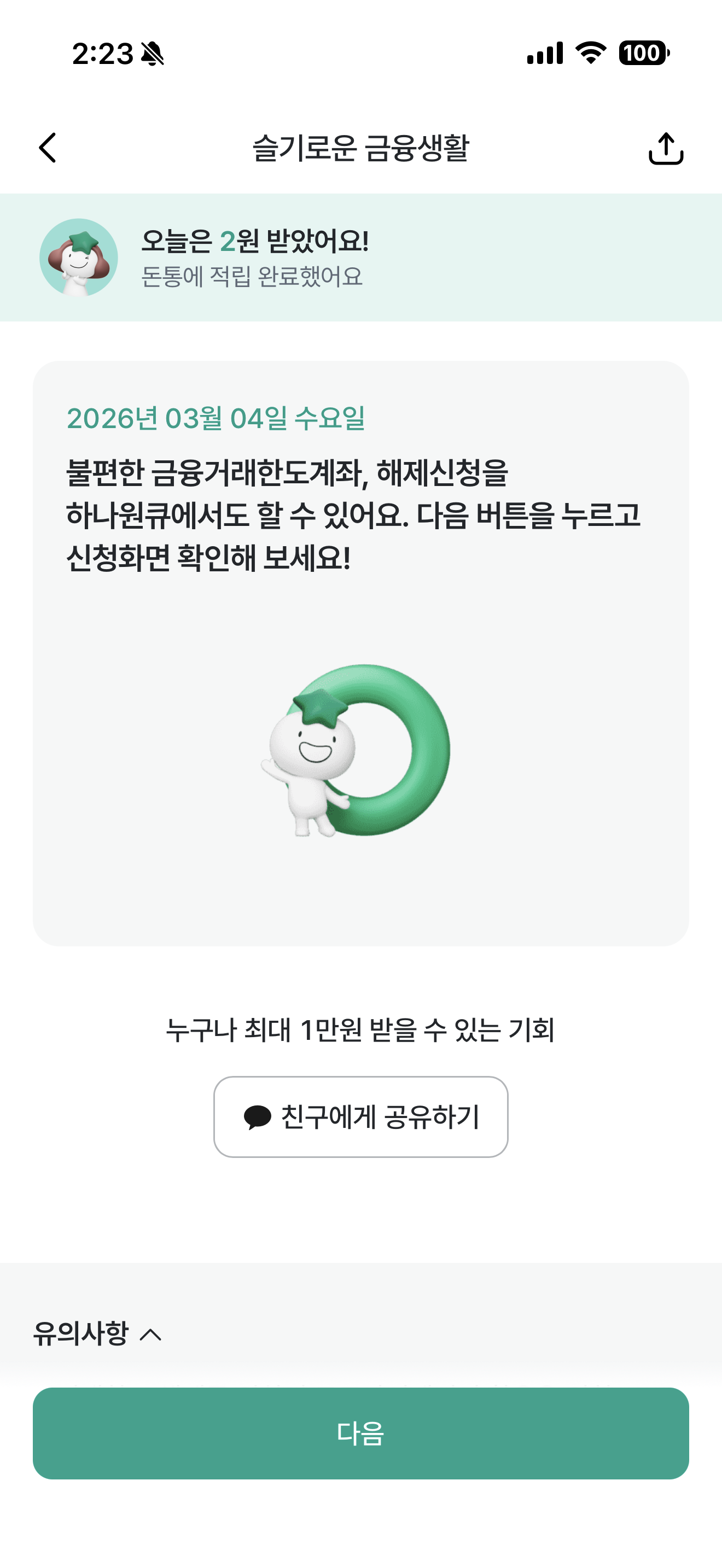 하나원큐 슬기로운 금융생활 OX 퀴즈 3월 4일 문제입니다