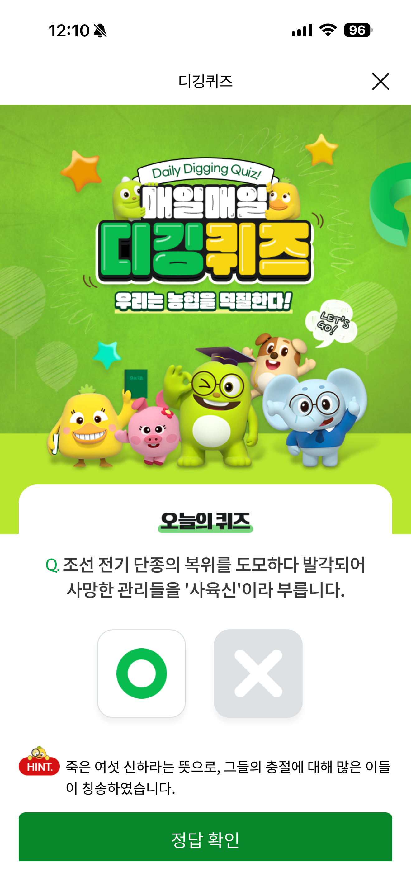 NH올원뱅크 디깅퀴즈 정답은 O 입니다