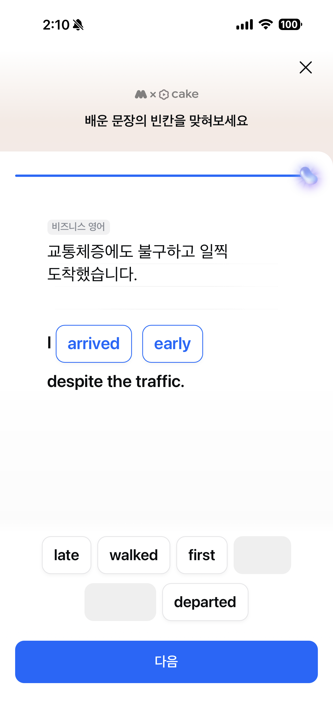 모니모 오늘의 영어 3월 7일 정답(출퇴근 시간이 길었어요. 제 이동 시간이 길었어요. 교통체증에도 불구하고 일찍 도착했습니다)