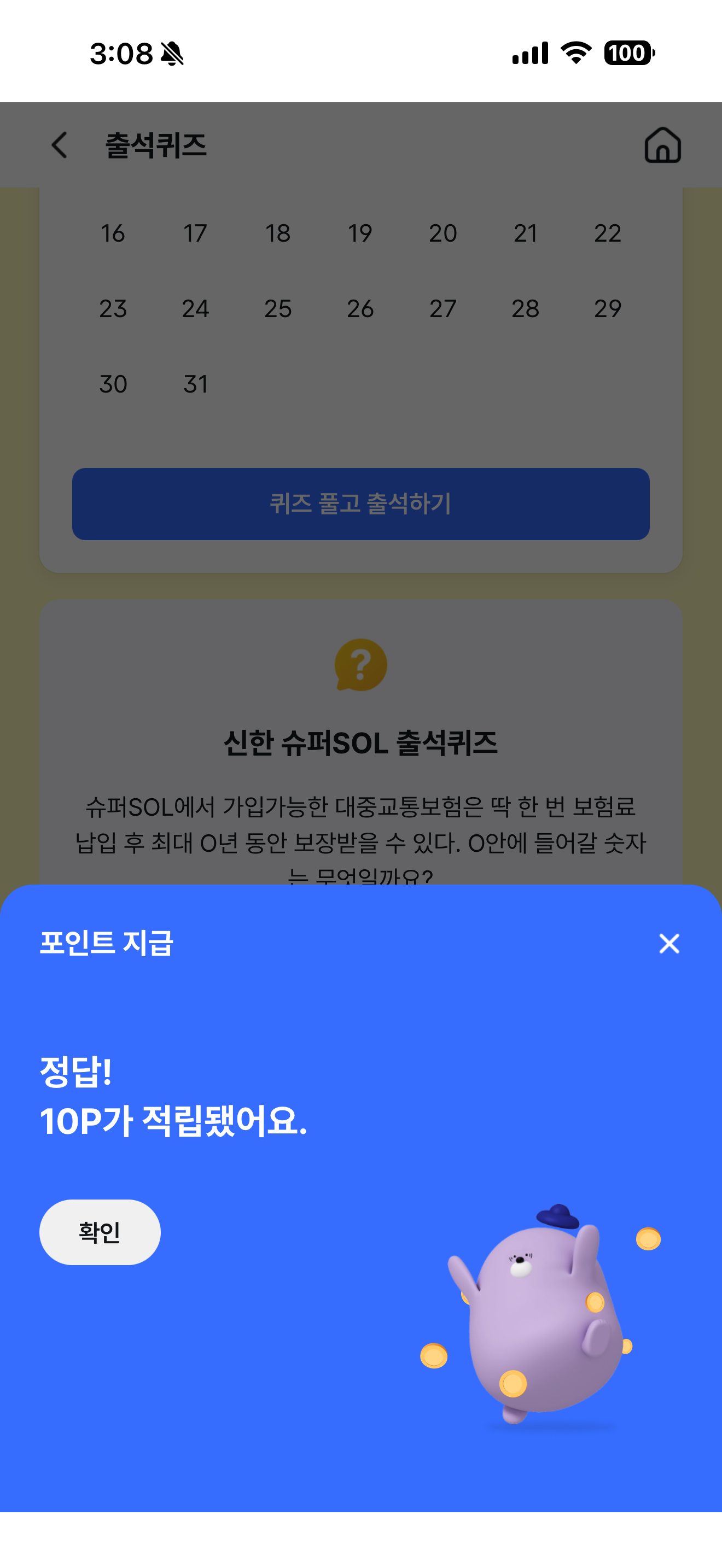 신한 슈퍼SOL 출석퀴즈 정답은 3년 입니다