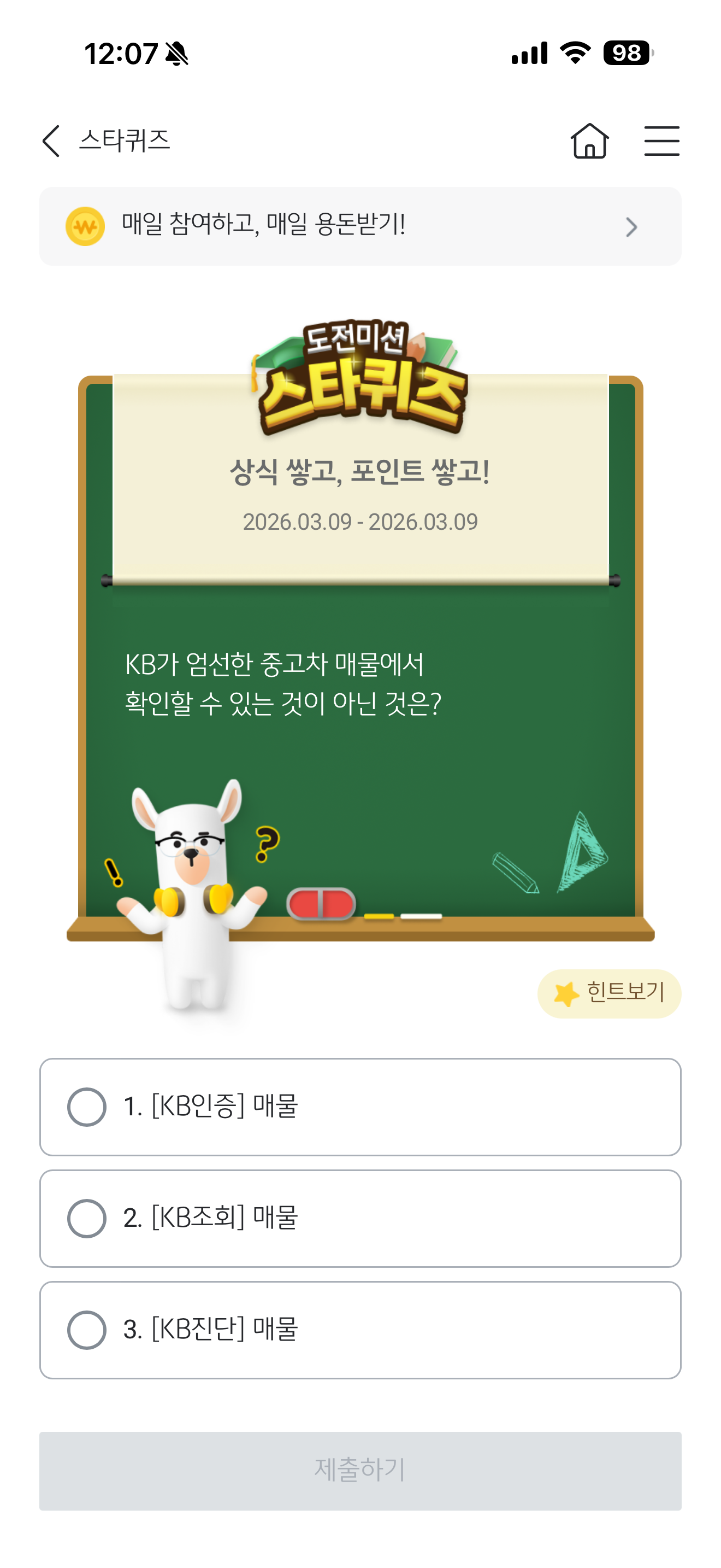KB스타뱅킹 스타퀴즈 3월 9일 문제입니다