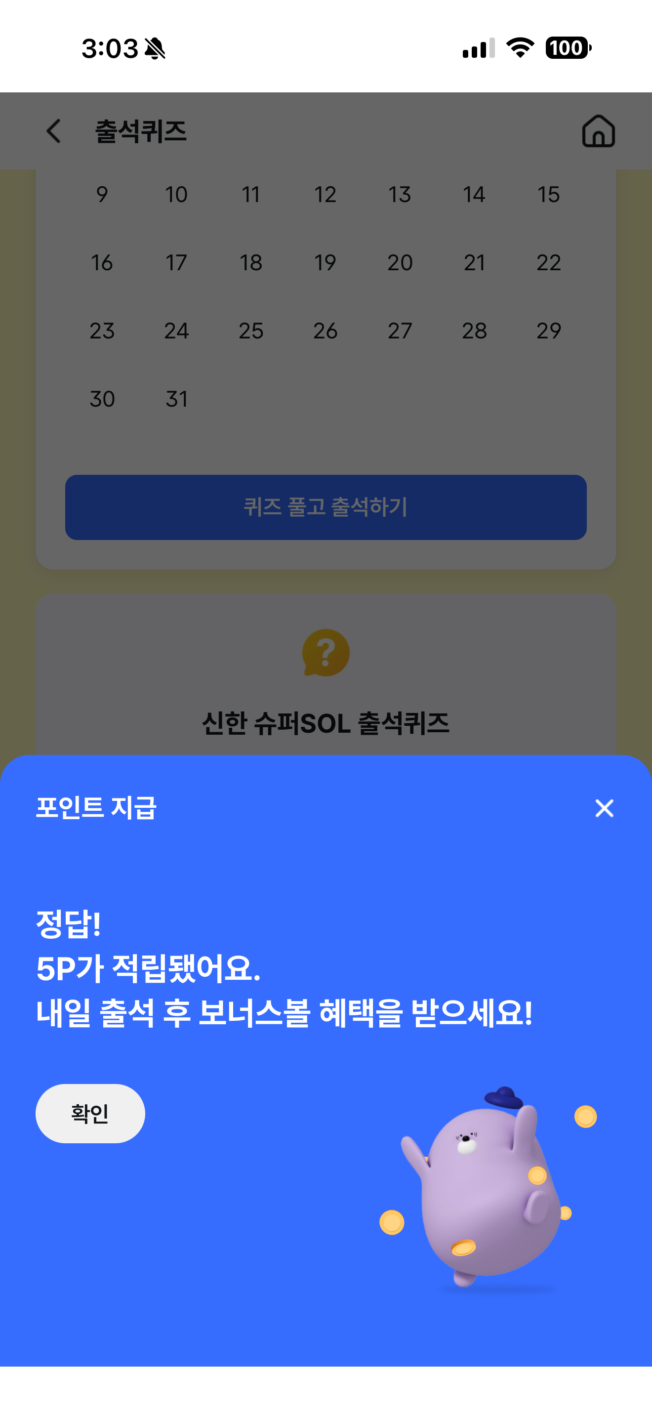 신한 슈퍼SOL 출석퀴즈 3월 9일 문제입니다