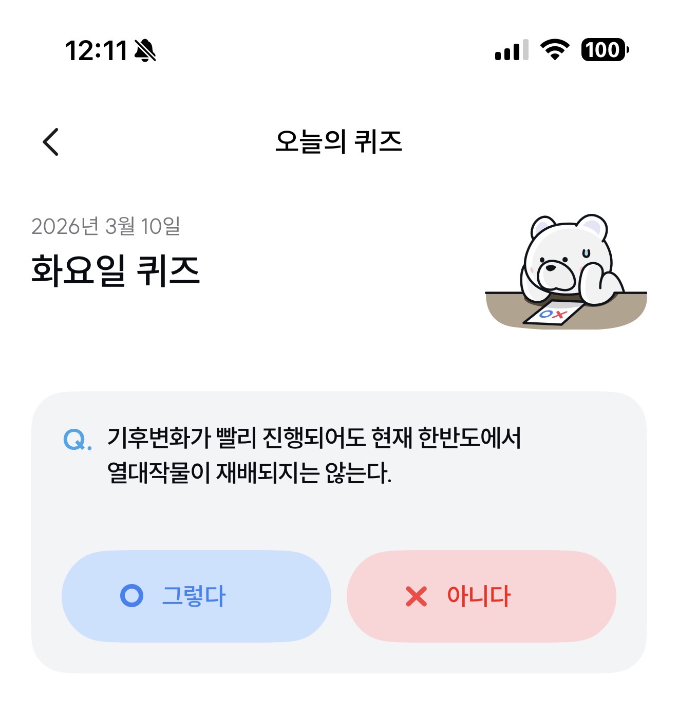 기후행동 기회소득 오늘의 퀴즈 정답은 아니다 입니다