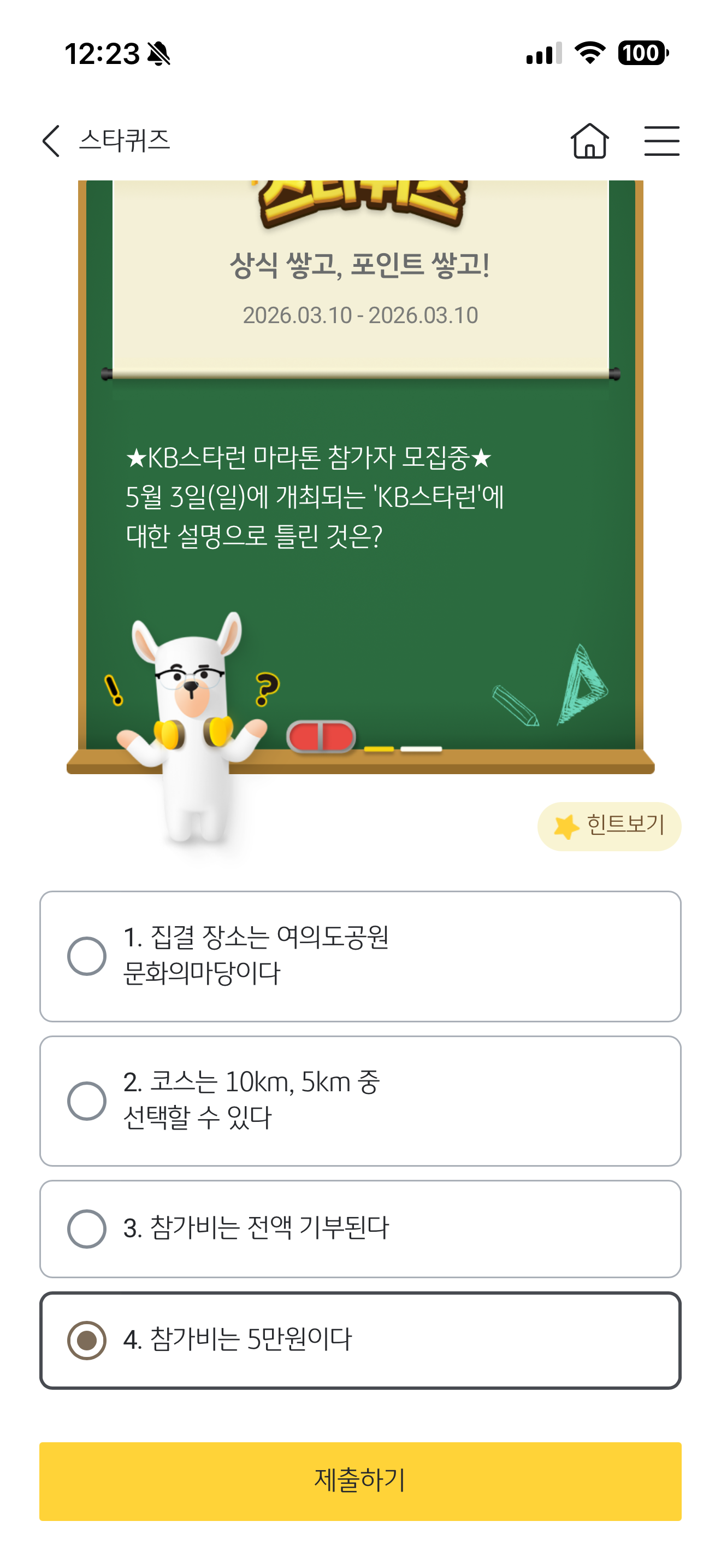 KB스타뱅킹 스타퀴즈 3월 10일 문제입니다