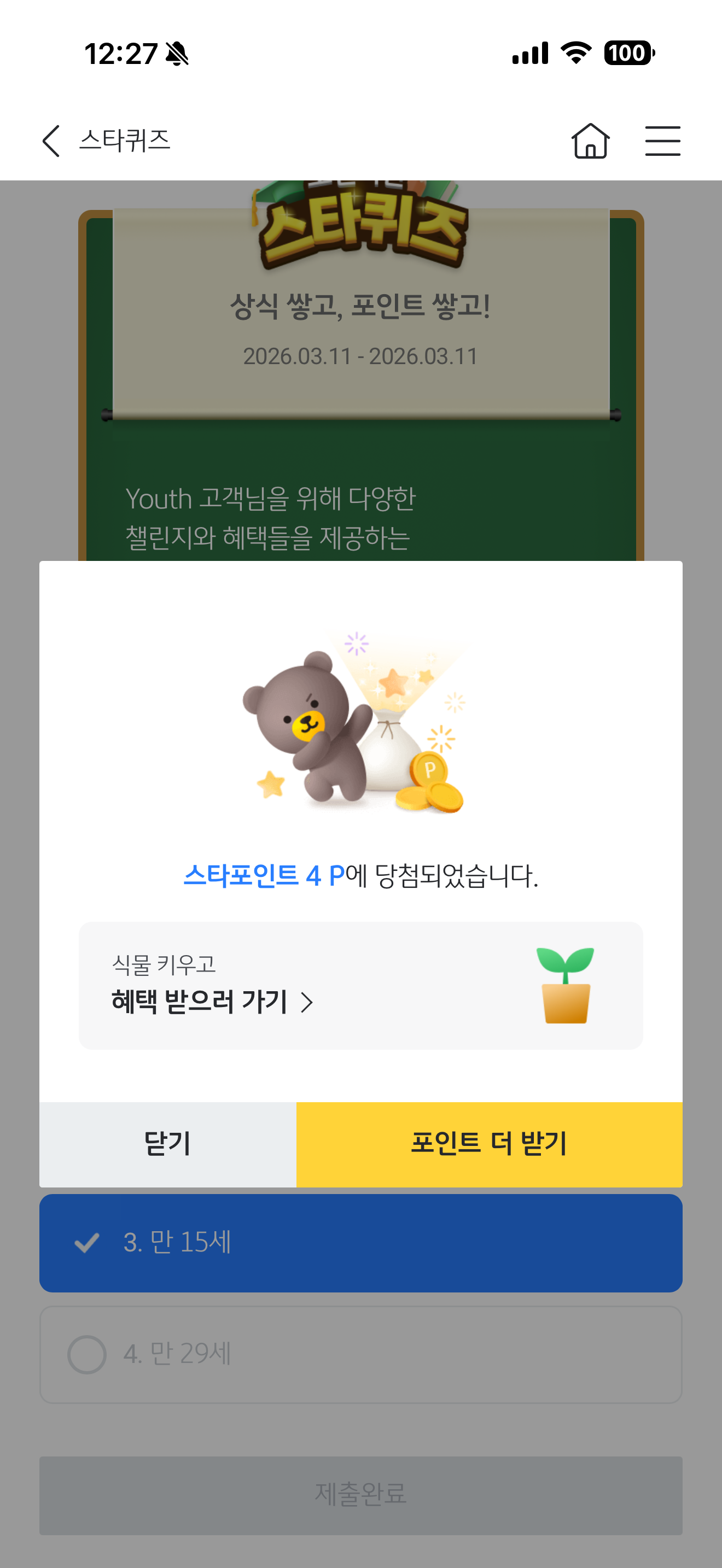 KB스타뱅킹 스타퀴즈 정답은 만 15세 입니다