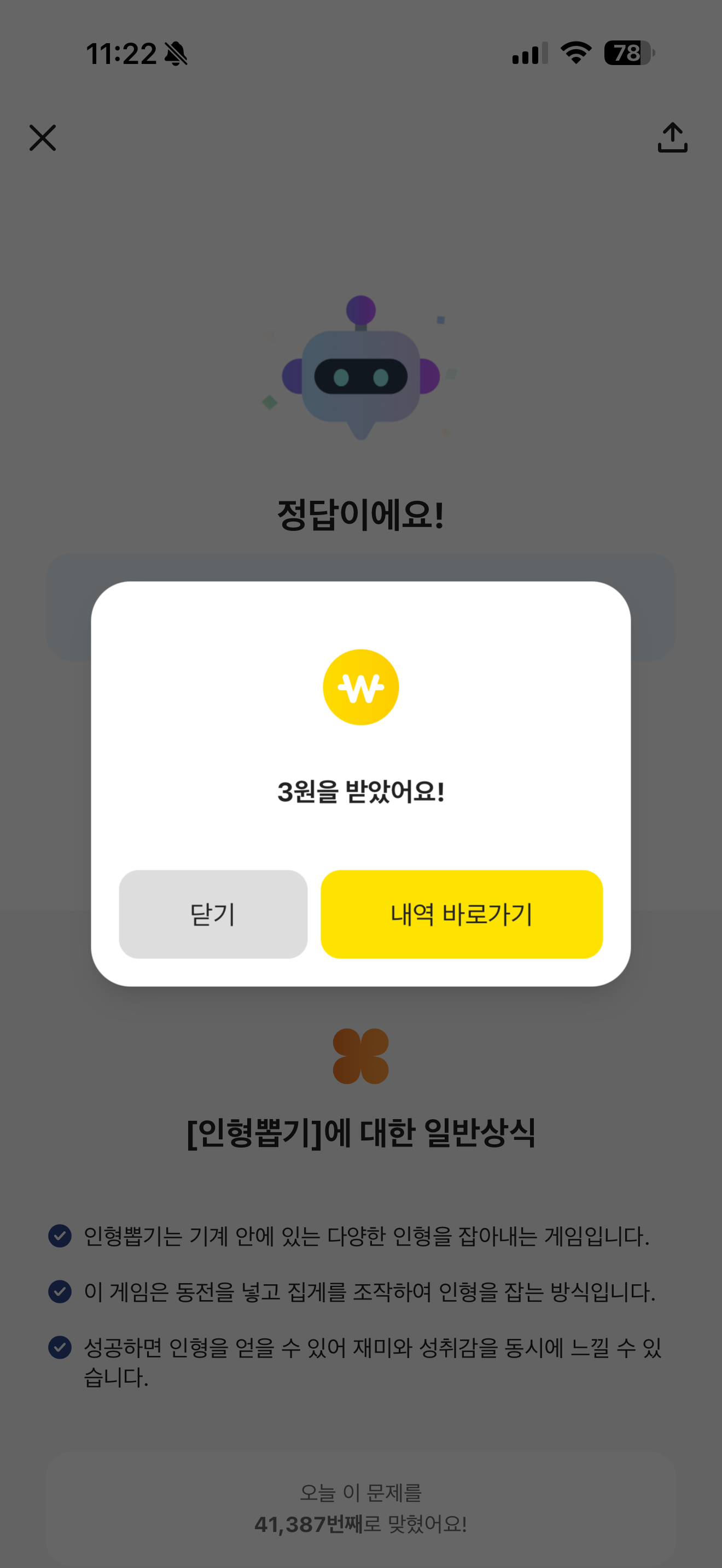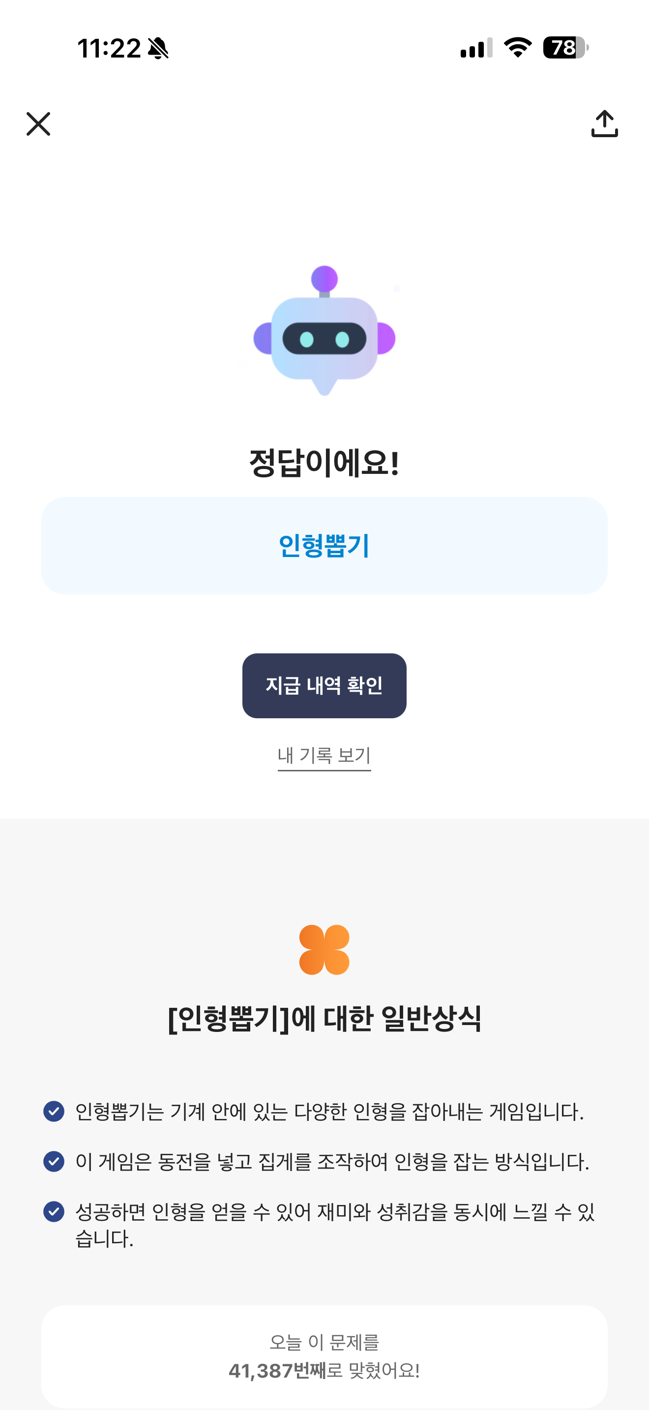 카카오뱅크 AI 퀴즈 정답은 인형뽑기 입니다