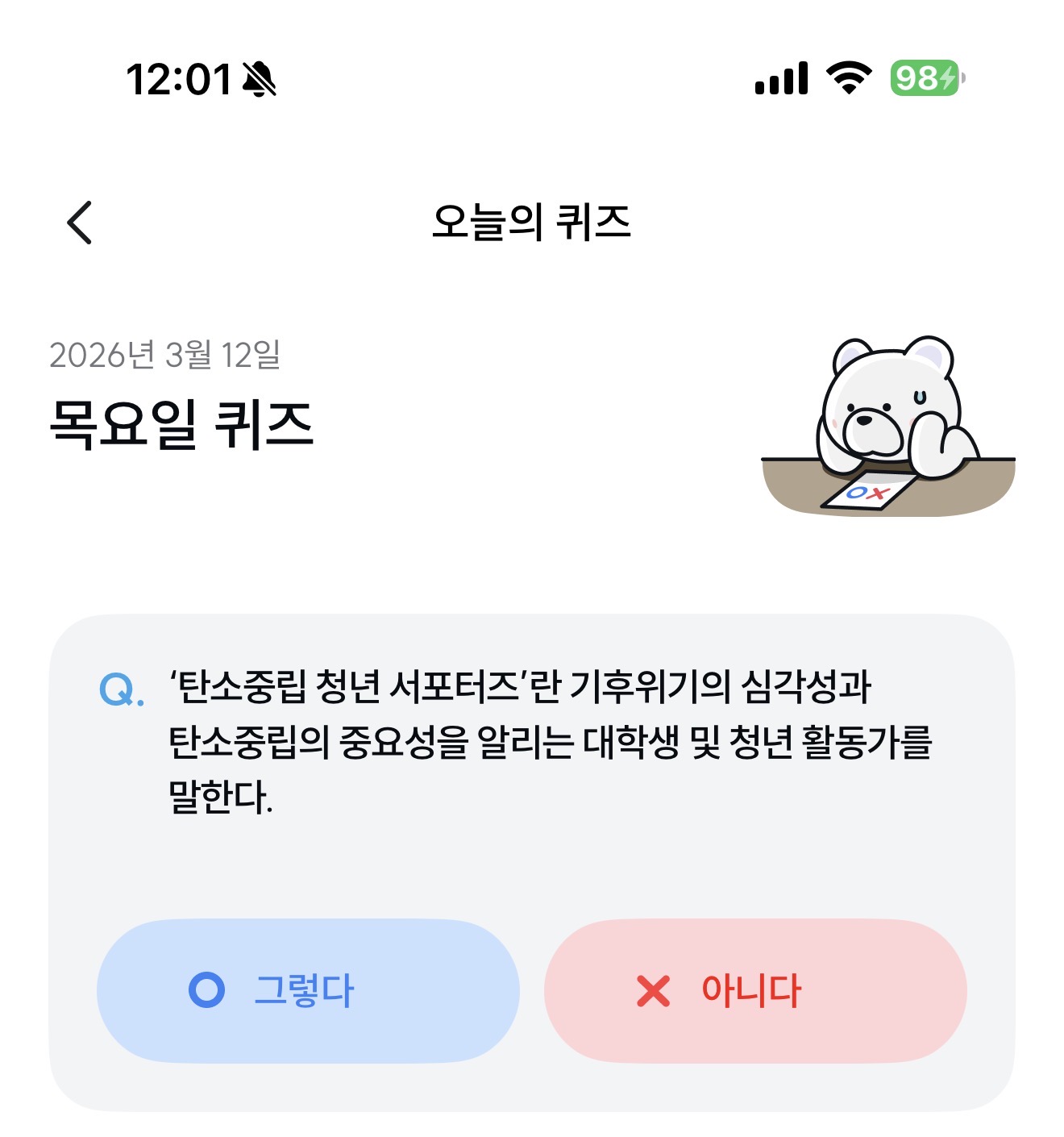 기후행동 기회소득 오늘의 퀴즈 3월 12일 문제입니다