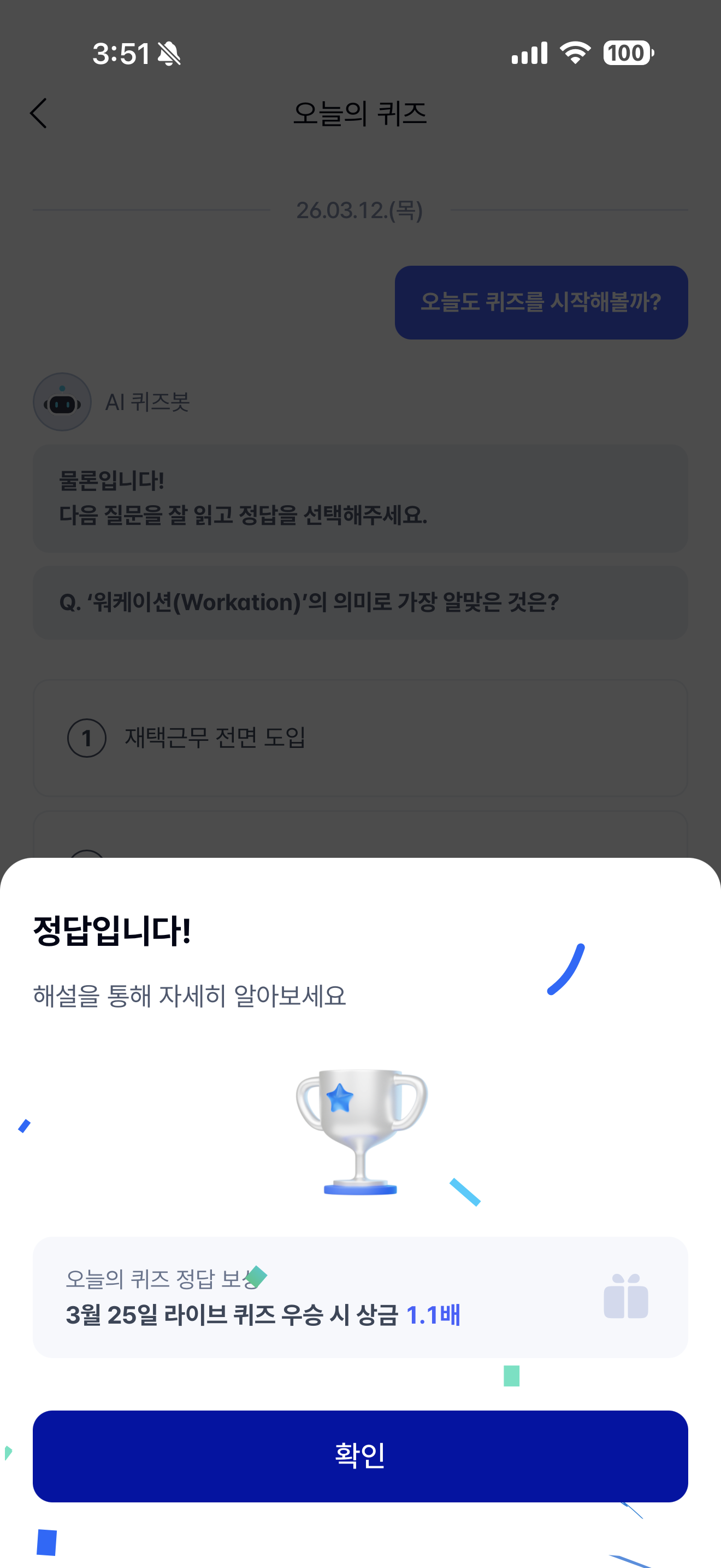 케이뱅크 AI 퀴즈 챌린지 정답은 여행지에서 일과 휴식을 병행 입니다