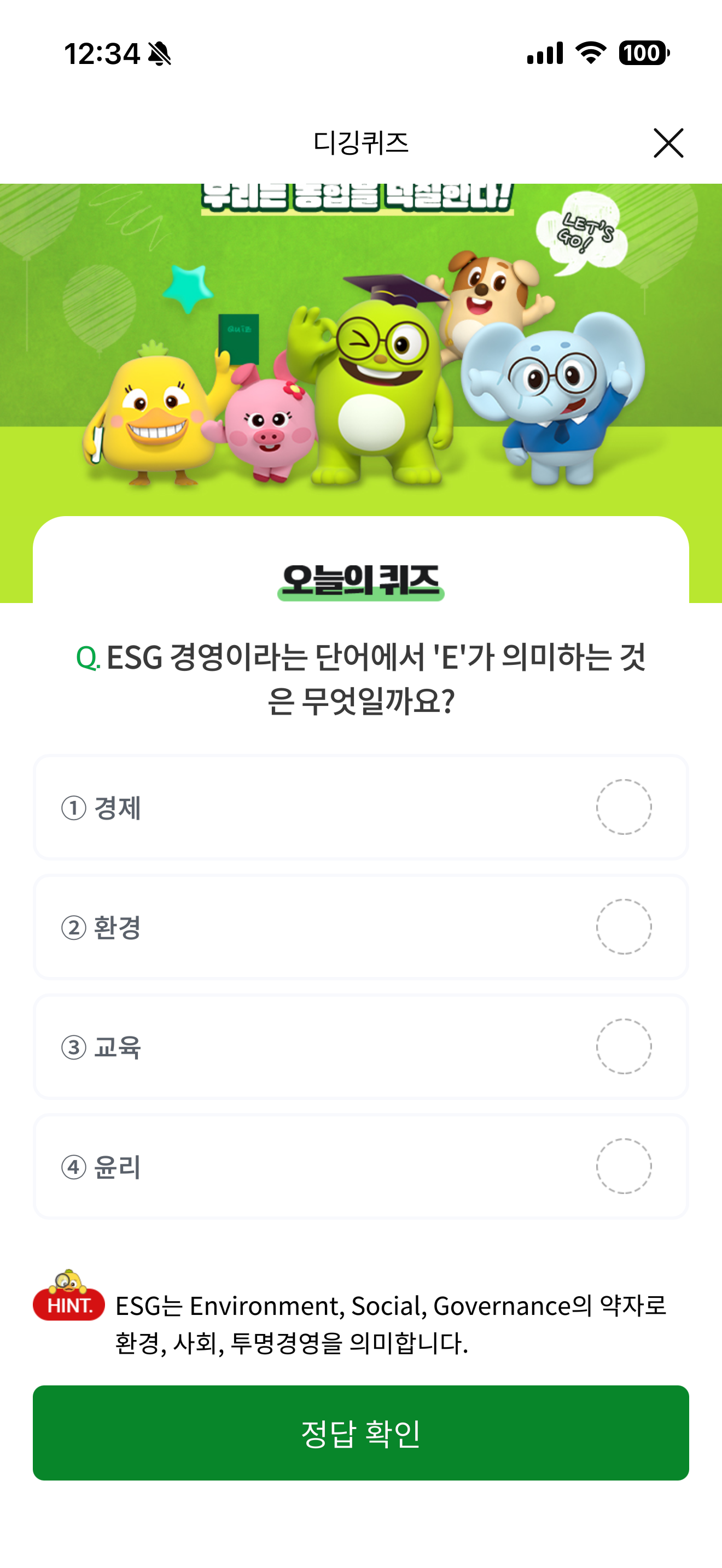 NH올원뱅크 디깅퀴즈 정답은 환경 입니다