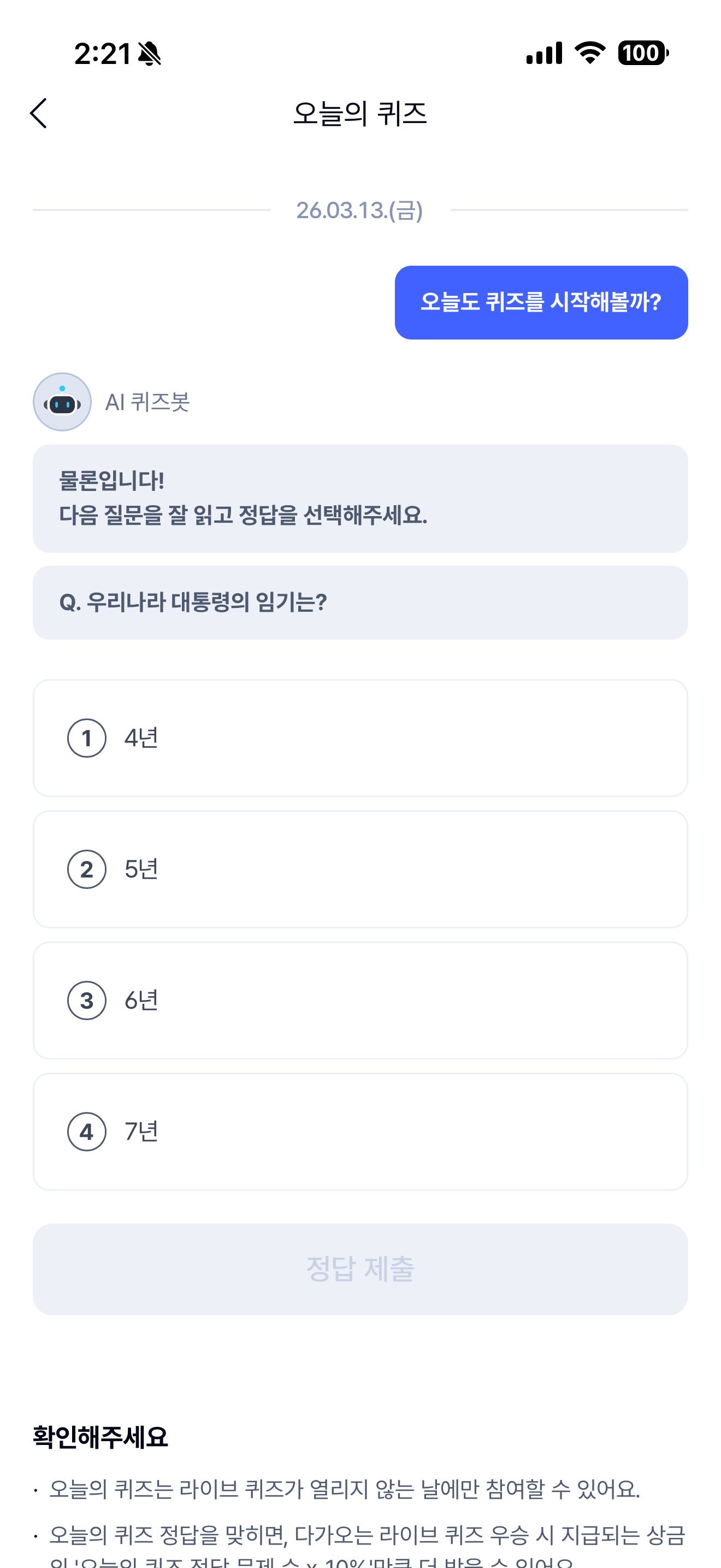 케이뱅크 AI 퀴즈 챌린저 정답은 5년 입니다