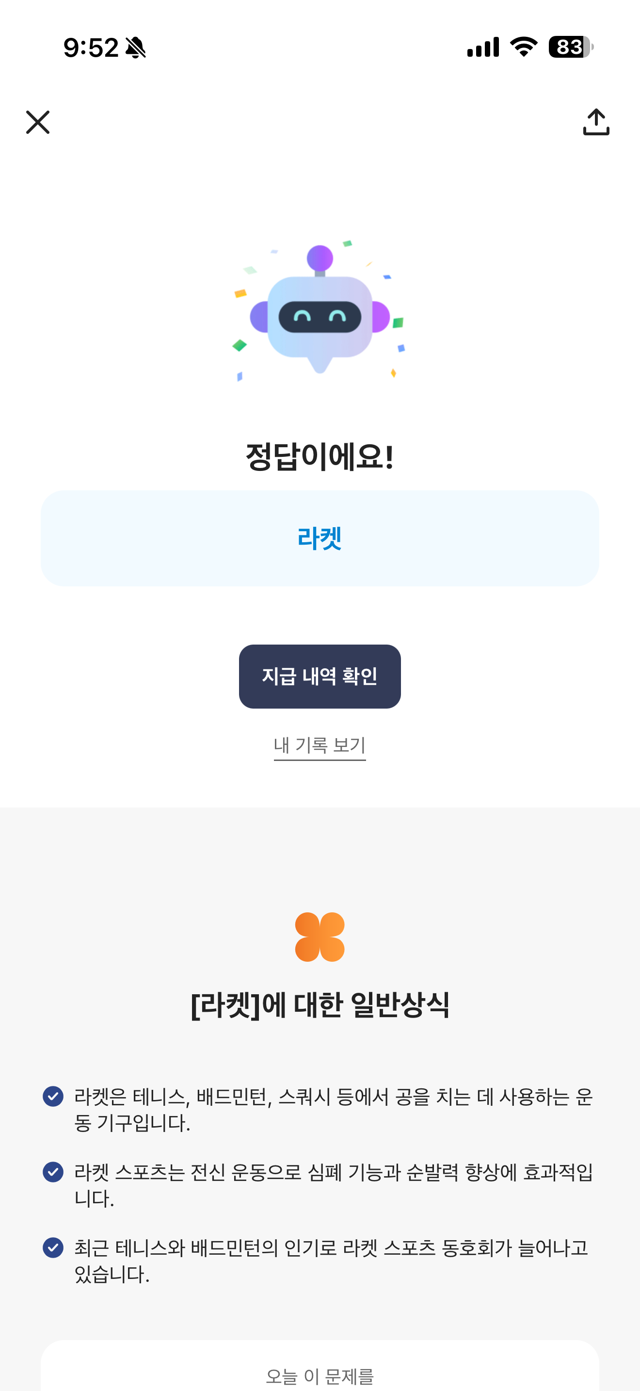 카카오뱅크 AI 퀴즈 정답은 라켓 입니다