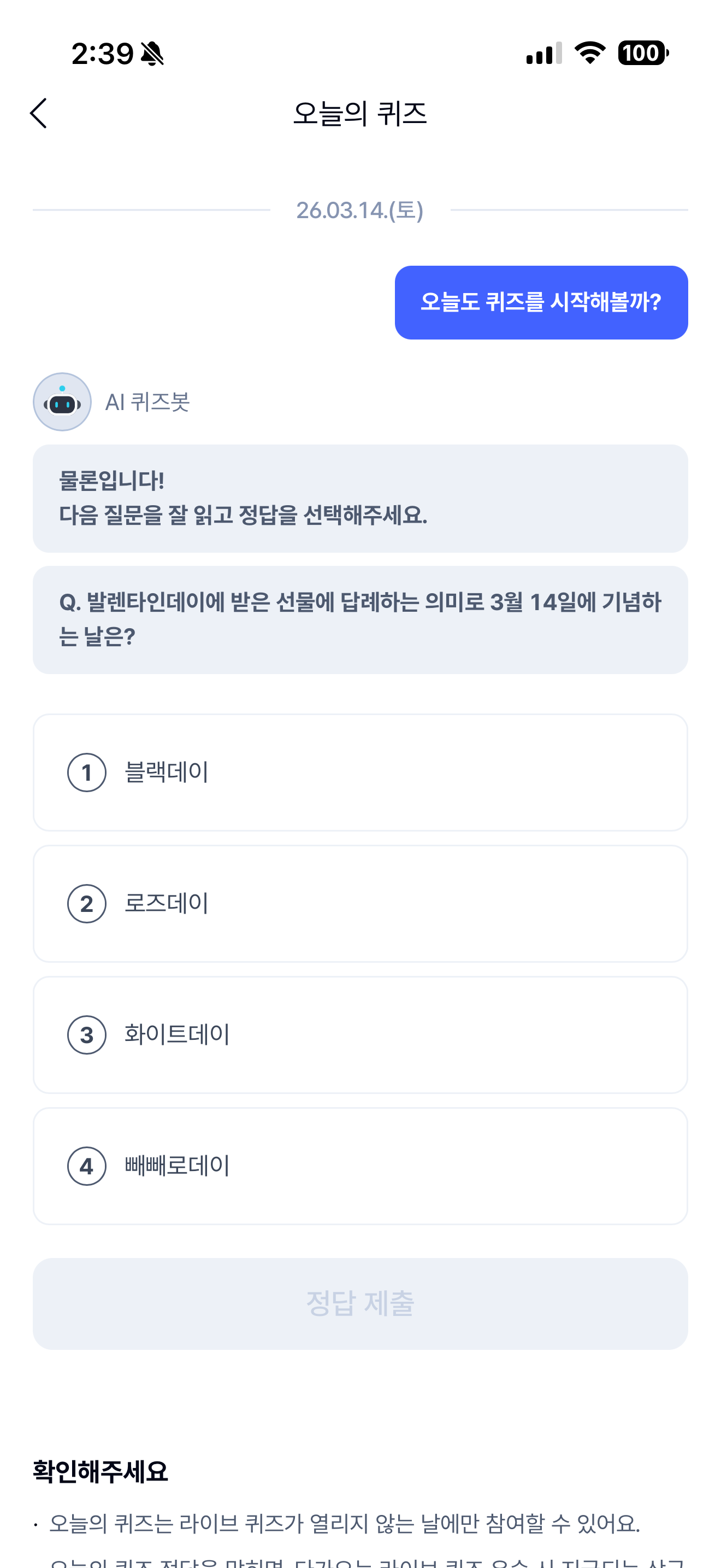 케이뱅크 AI 퀴즈 챌린지 정답은 화이트데이 입니다