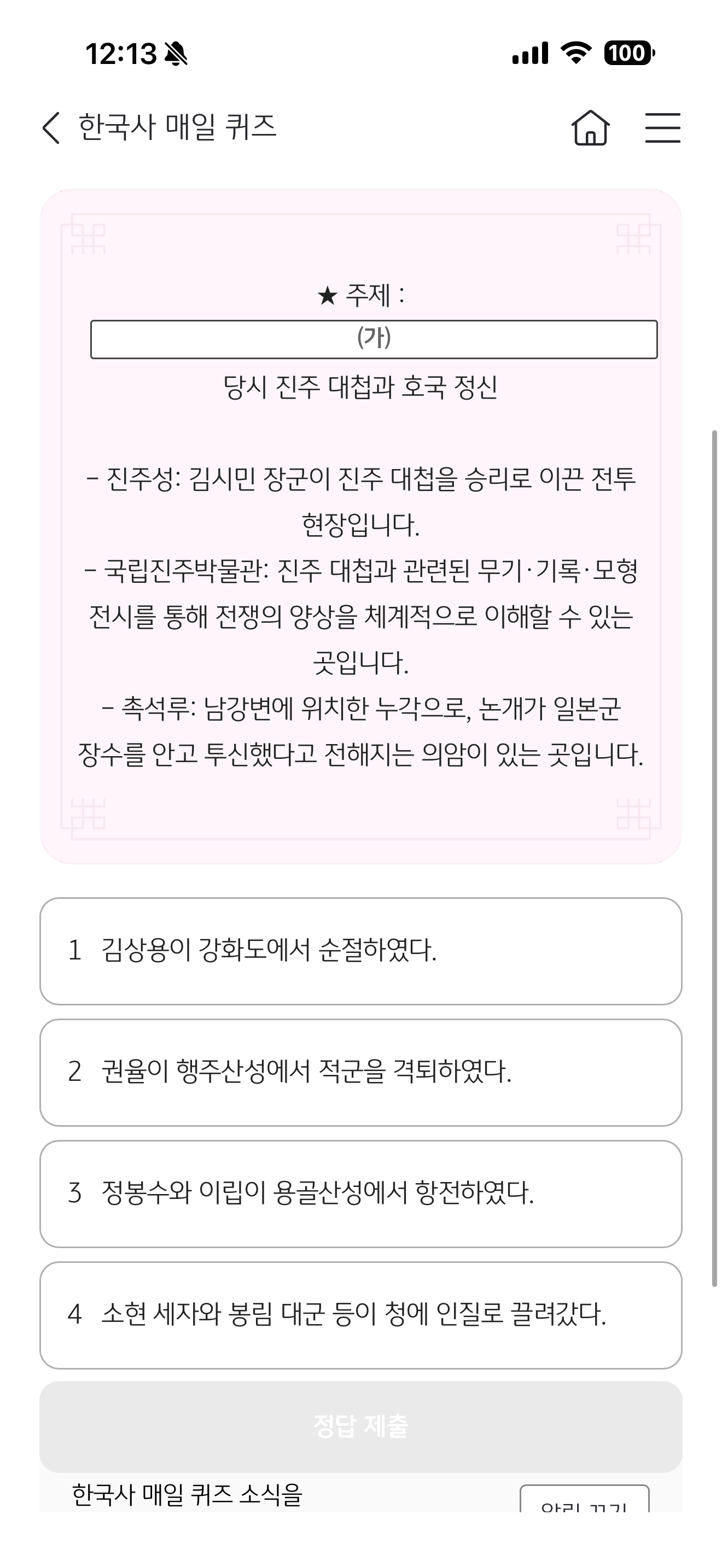 KB스타뱅킹 한국사 매일 퀴즈 3월 17일 문제입니다
