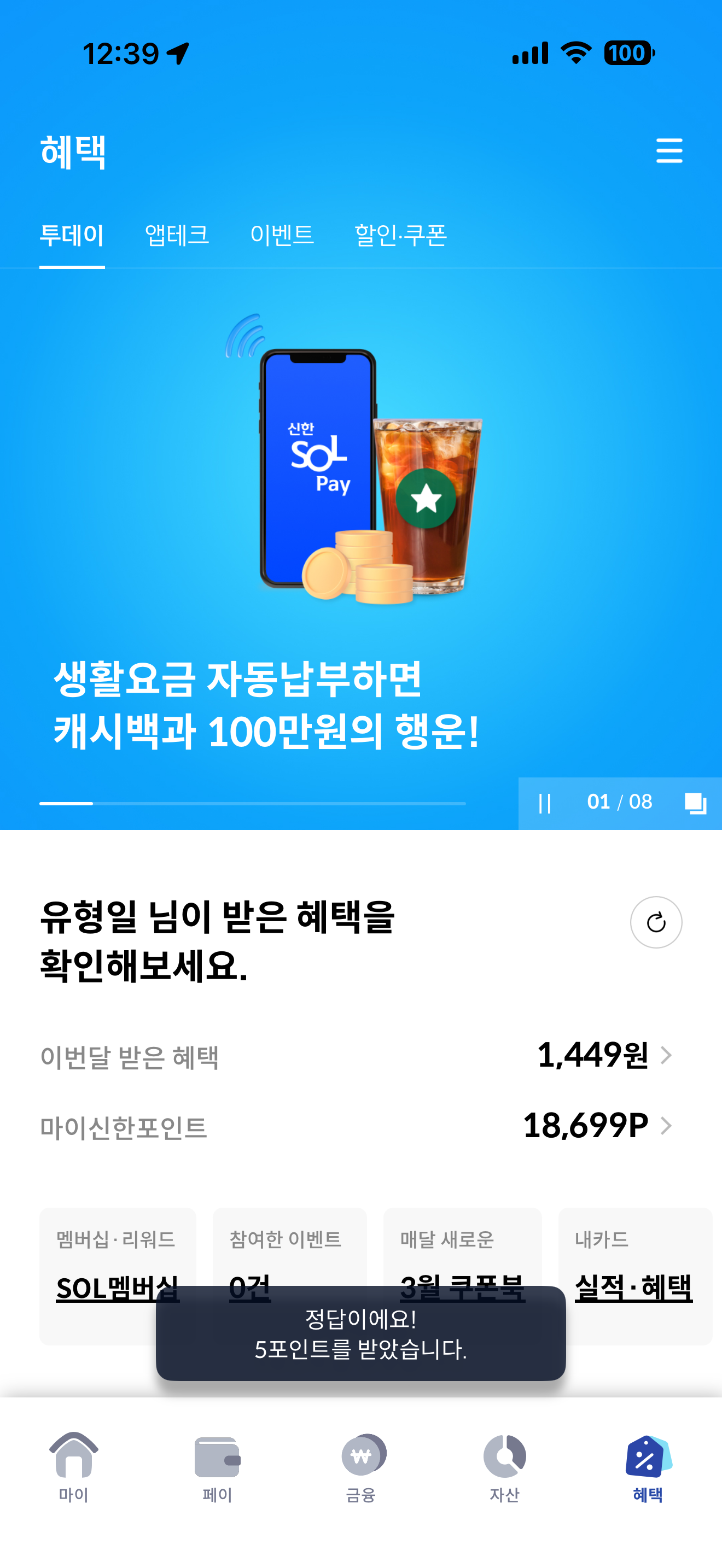신한카드 퀴즈팡팡 정답은 스마트폰케어 입니다