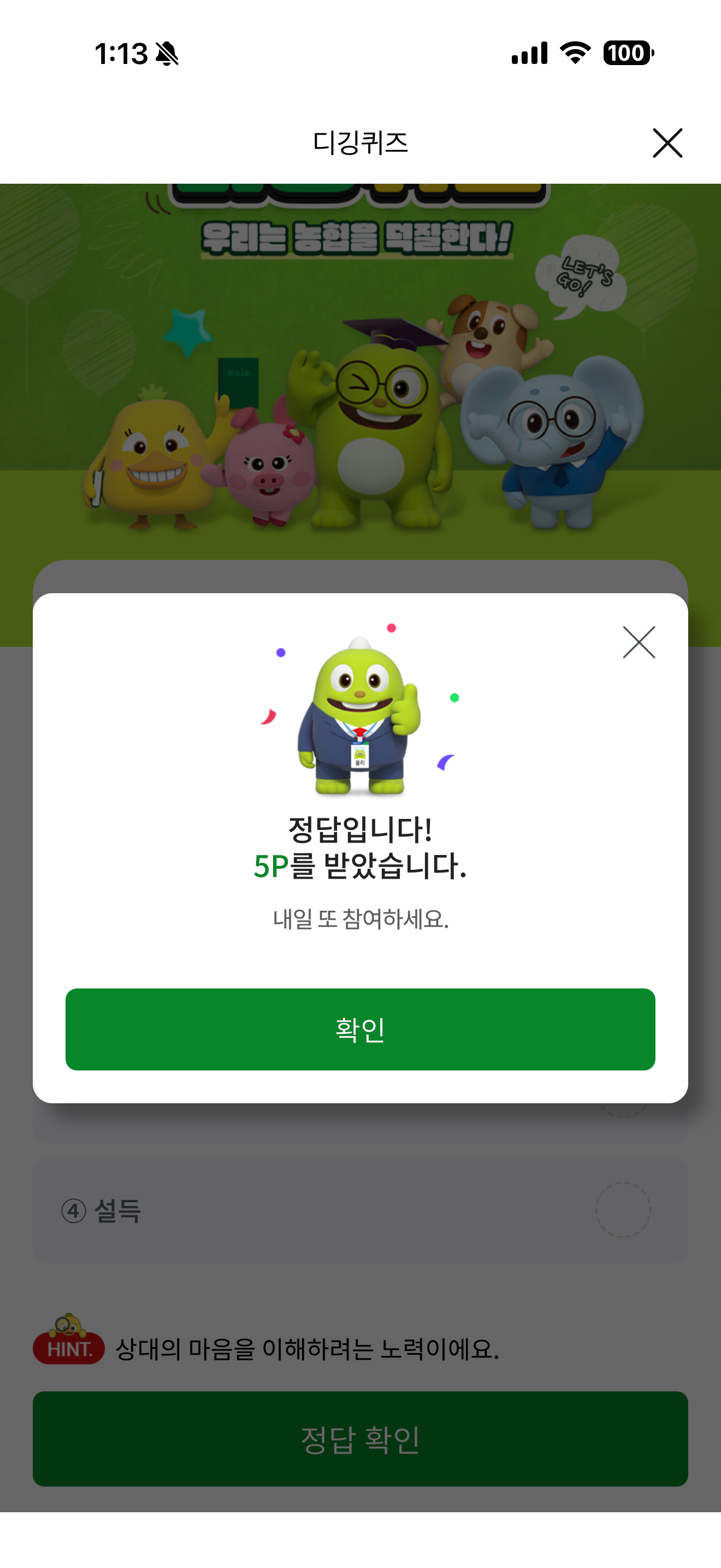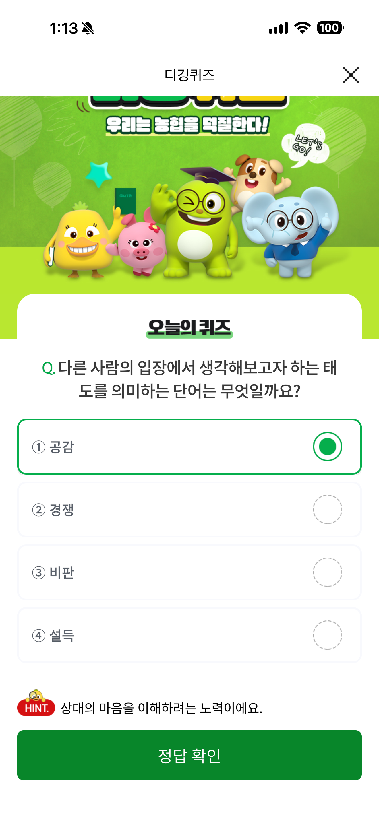 NH올원뱅크 디깅퀴즈 정답은 공감 입니다