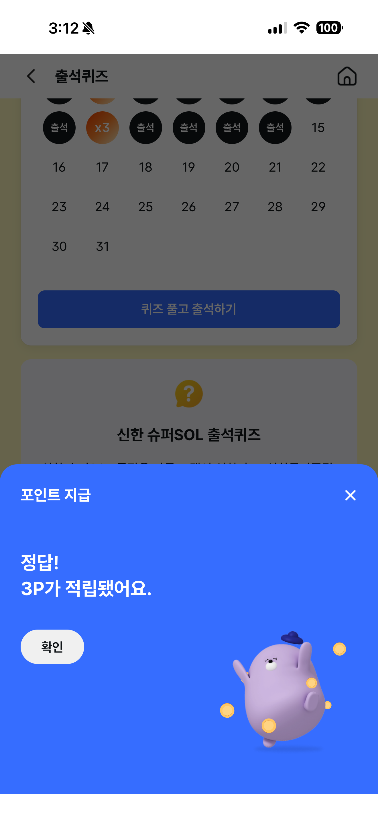 신한 슈퍼SOL 출석퀴즈 3월 17일 문제입니다