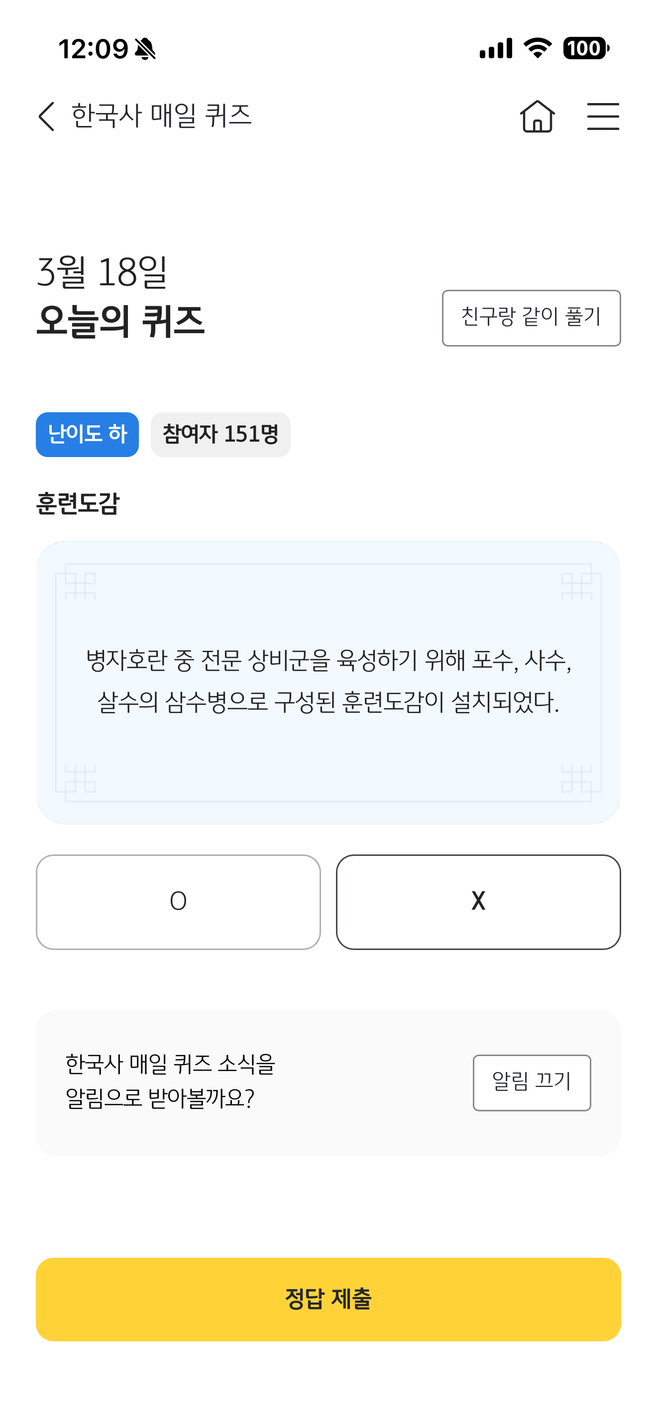 KB스타뱅킹 한국사 매일 퀴즈 정답은 X 입니다