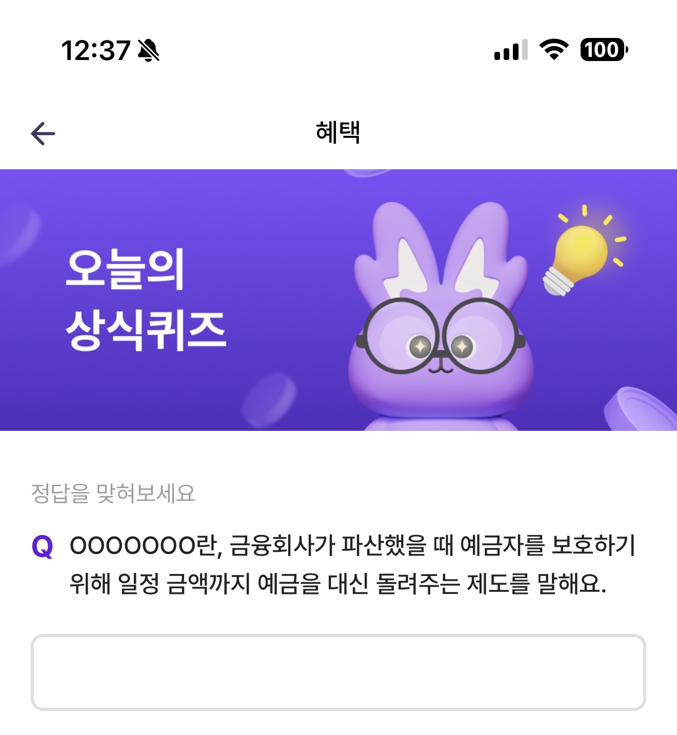OOOOOOO란, 금융회사가 파산했을 때 예금자를 보호하기 위해 일정 금액까지 예금을 대신 돌려주는 제도를 말해요. 주관식 퀴즈인데요. 제2금융권을 이용할때는 특히 알아둬야 할 내용이죠