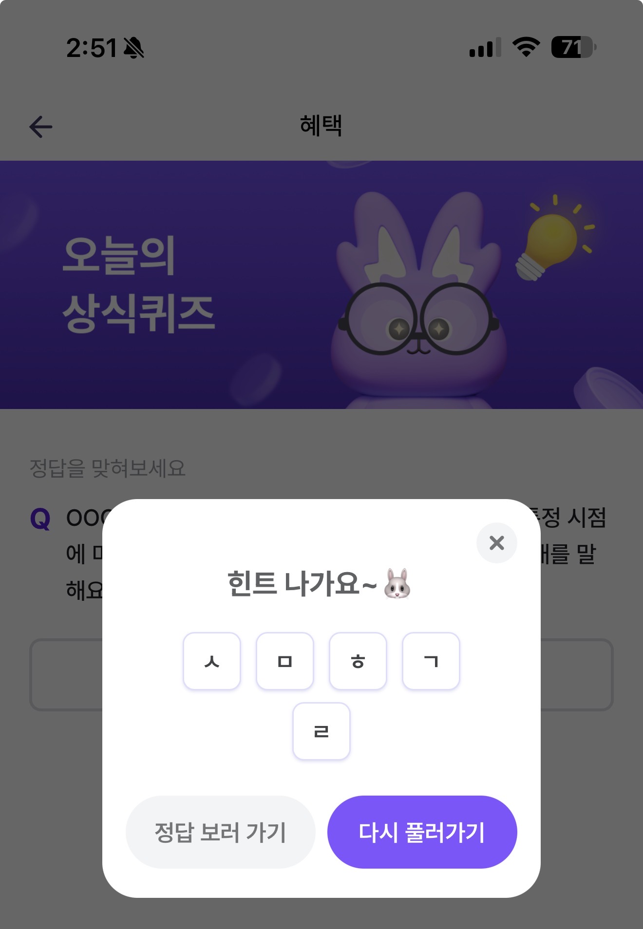 비트버니 오늘의 퀴즈 초성 힌트는 ㅅㅁㅎㄱㄹ 입니다