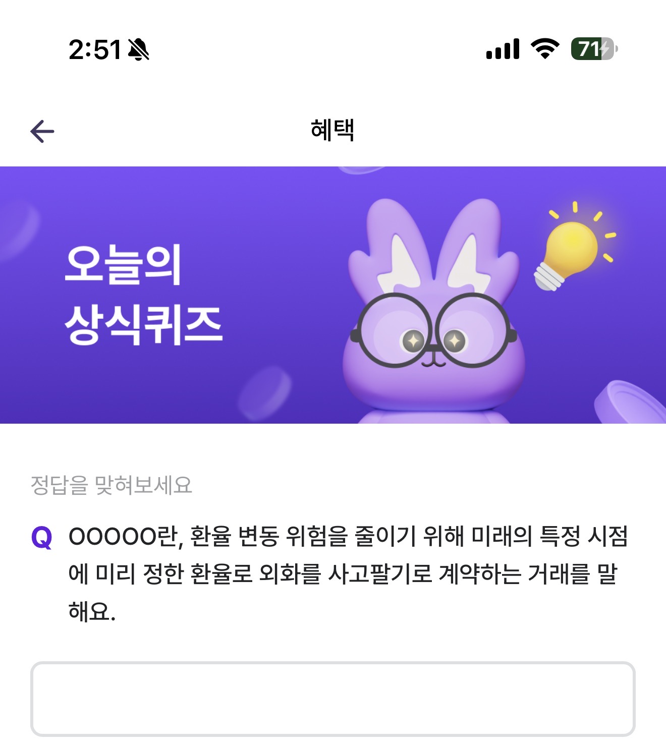 비트버니 오늘의 퀴즈 정답은 선물환거래 입니다