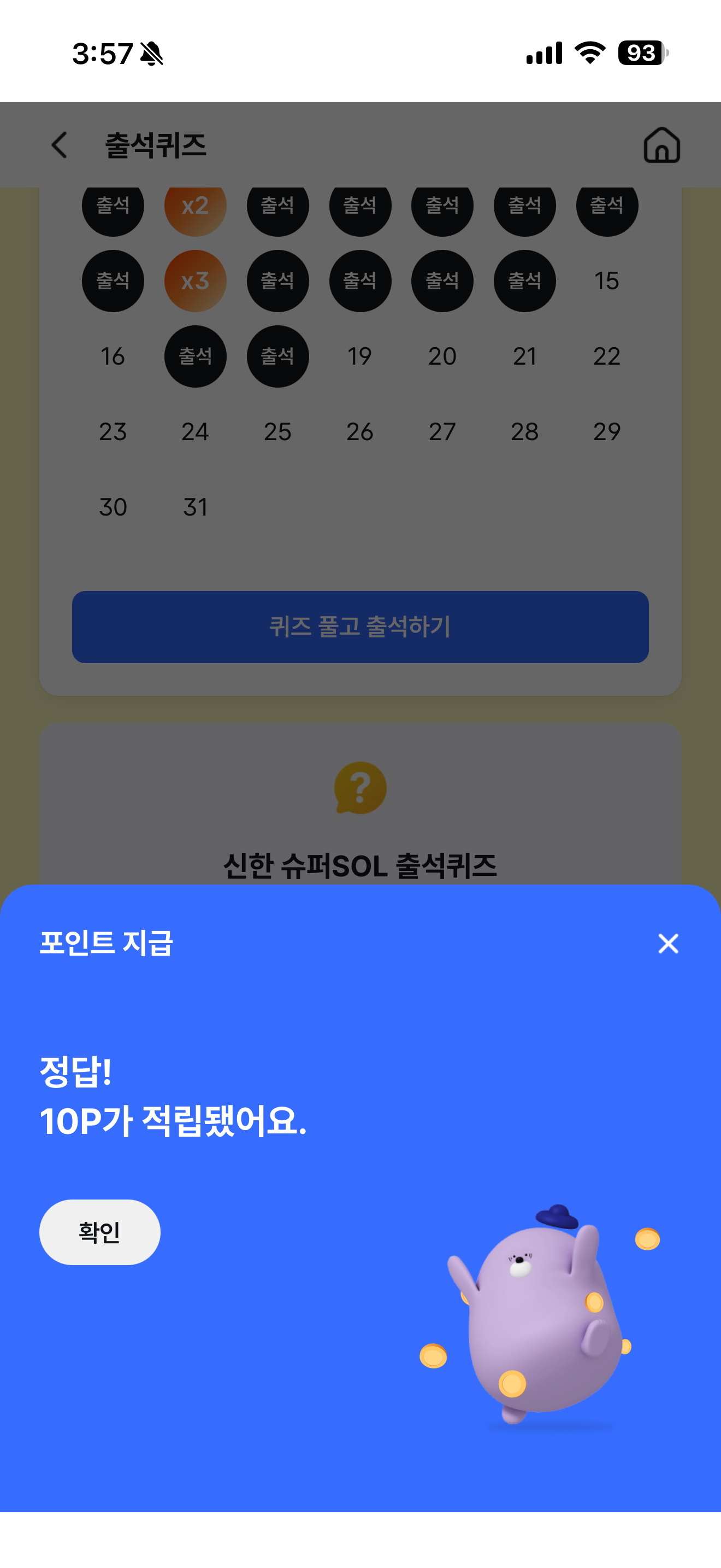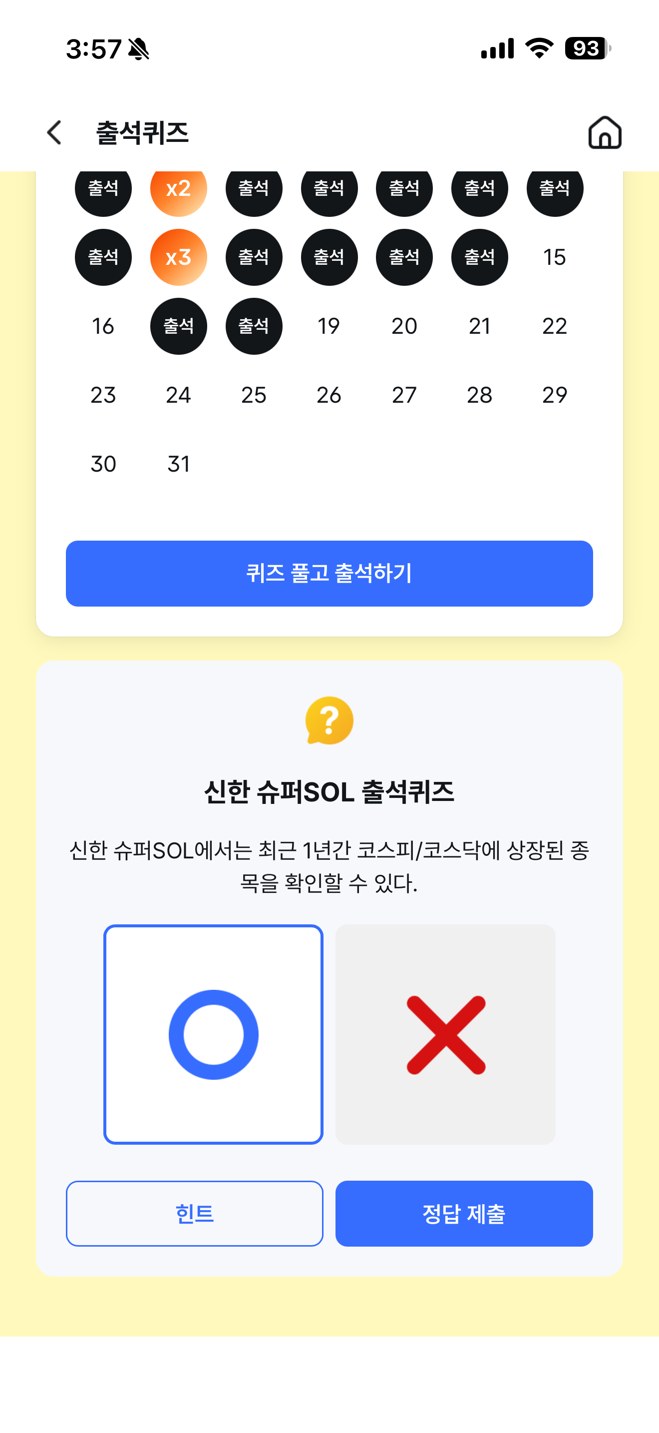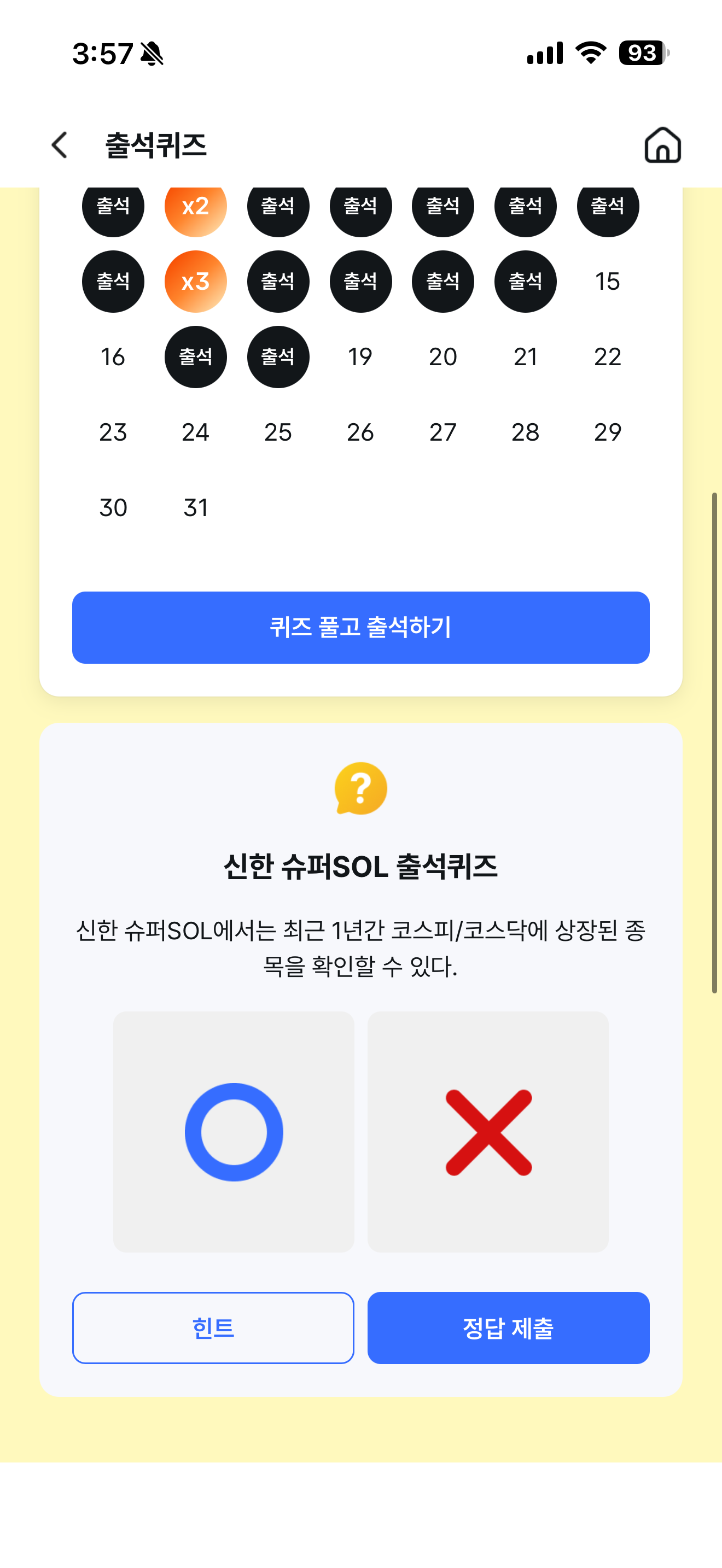 신한 슈퍼SOL 출석퀴즈 정답은 O 입니다