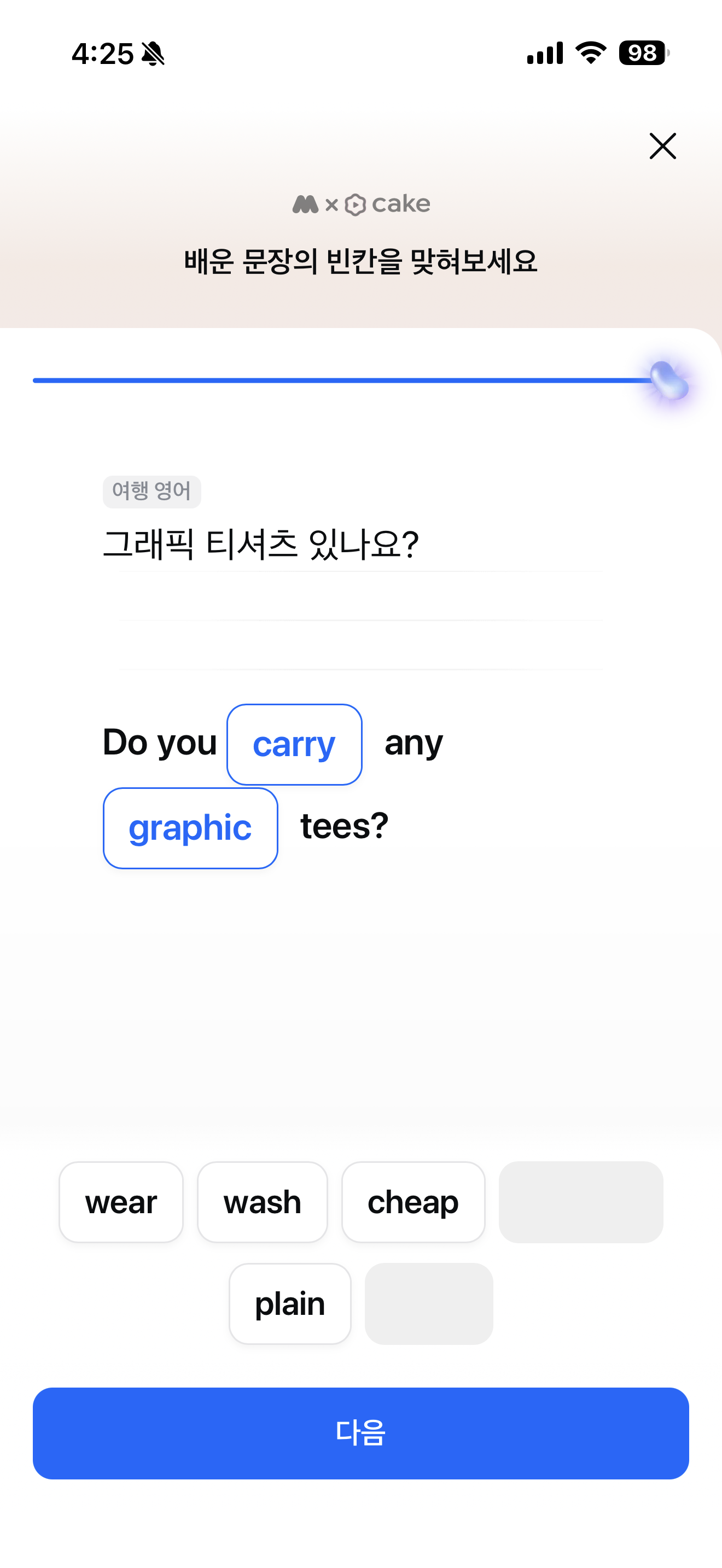 모니모 오늘의 영어 3월 19일 문제입니다