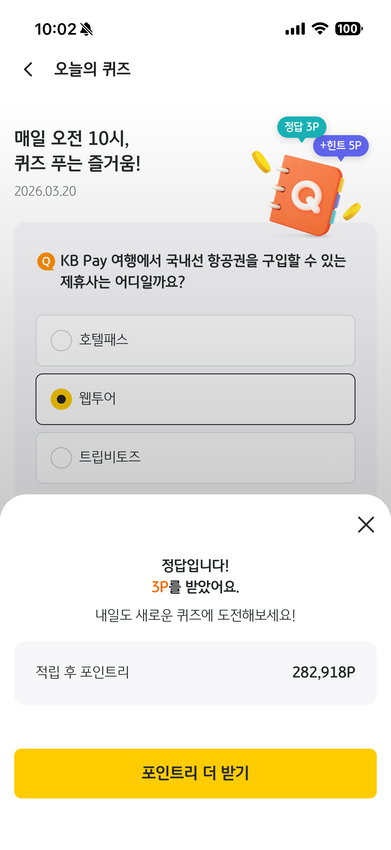 KB Pay 오늘의 퀴즈 정답은 웹투어 입니다