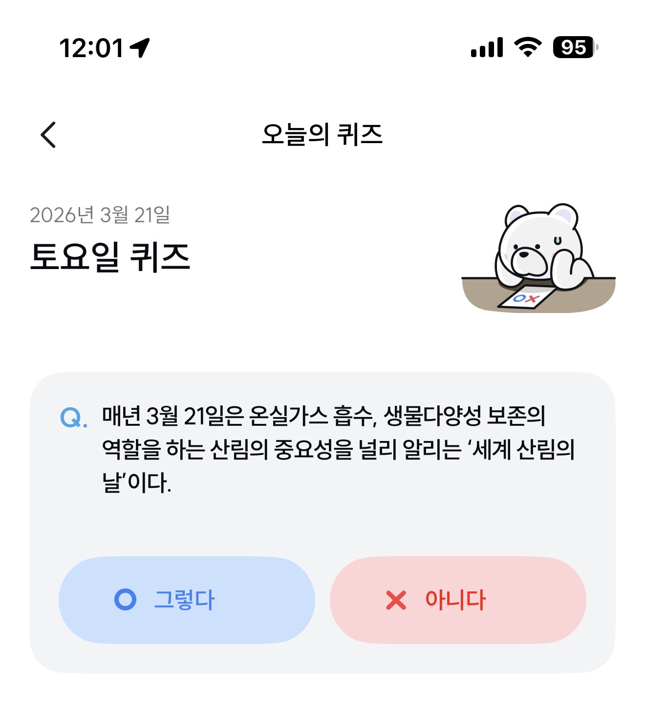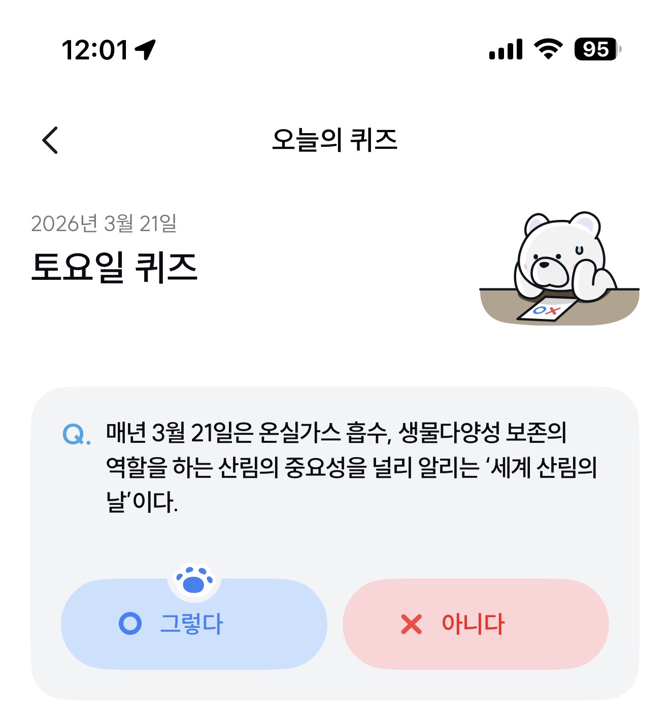기후행동 기회소득 오늘의 퀴즈 정답은 그렇다 입니다