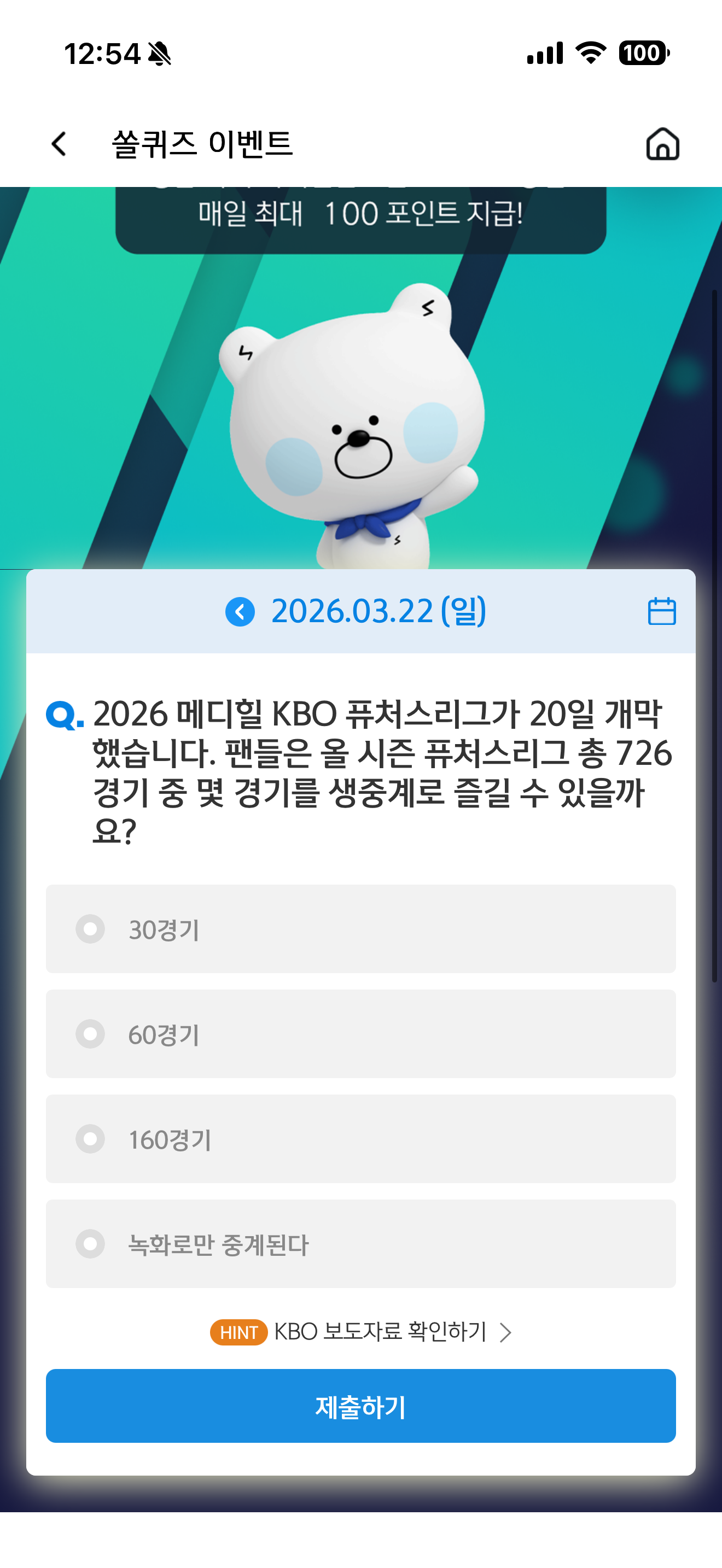 신한 슈퍼SOL 야구/상식 쏠퀴즈 3월 22일 정답(2026 메디힐 KBO 퓨처스리그가 20일 개막 했습니다. 팬들은 올 시즌 퓨처스리그 총 726경기 중 몇 경기를 생중계로 즐길 수 있을까요?)