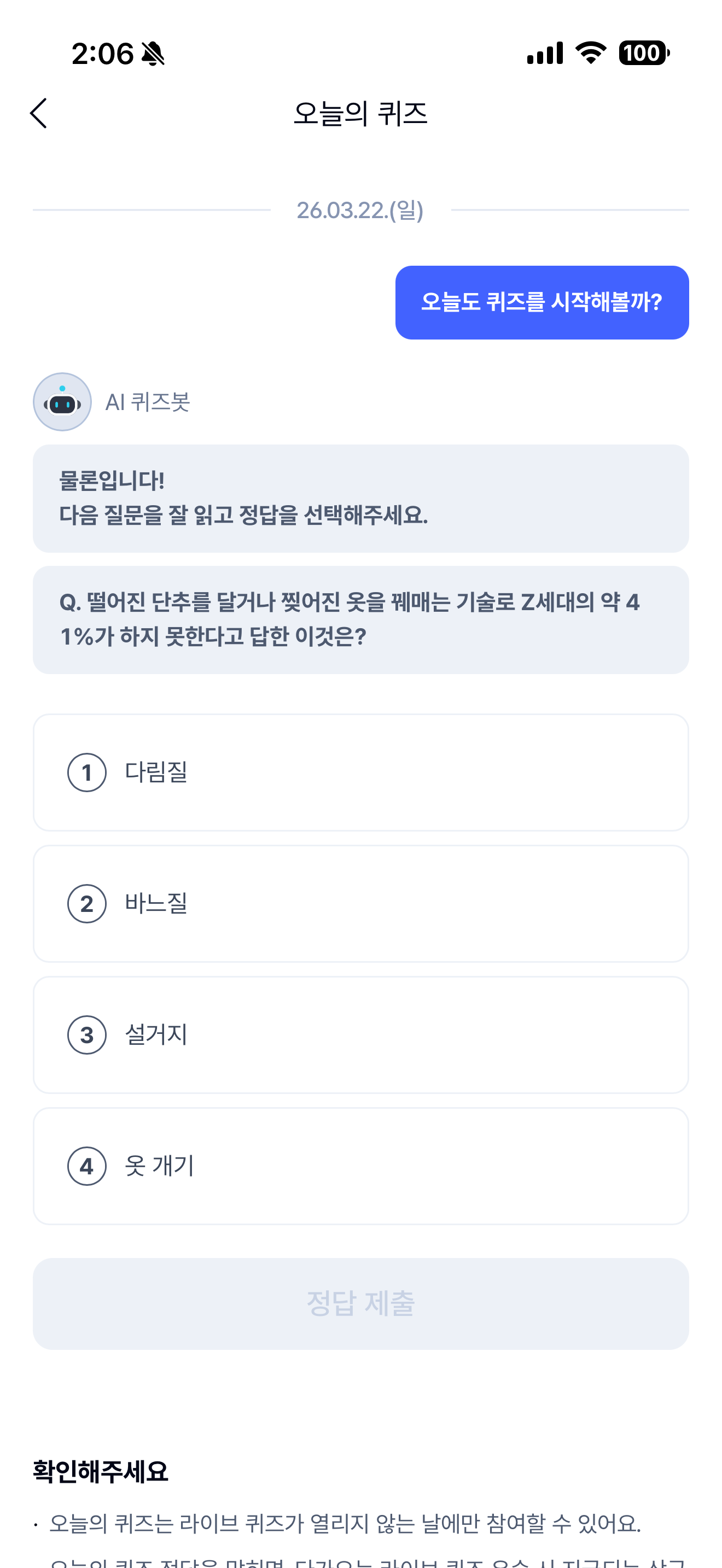 케이뱅크 AI 퀴즈 챌린지 정답은 바느질 입니다