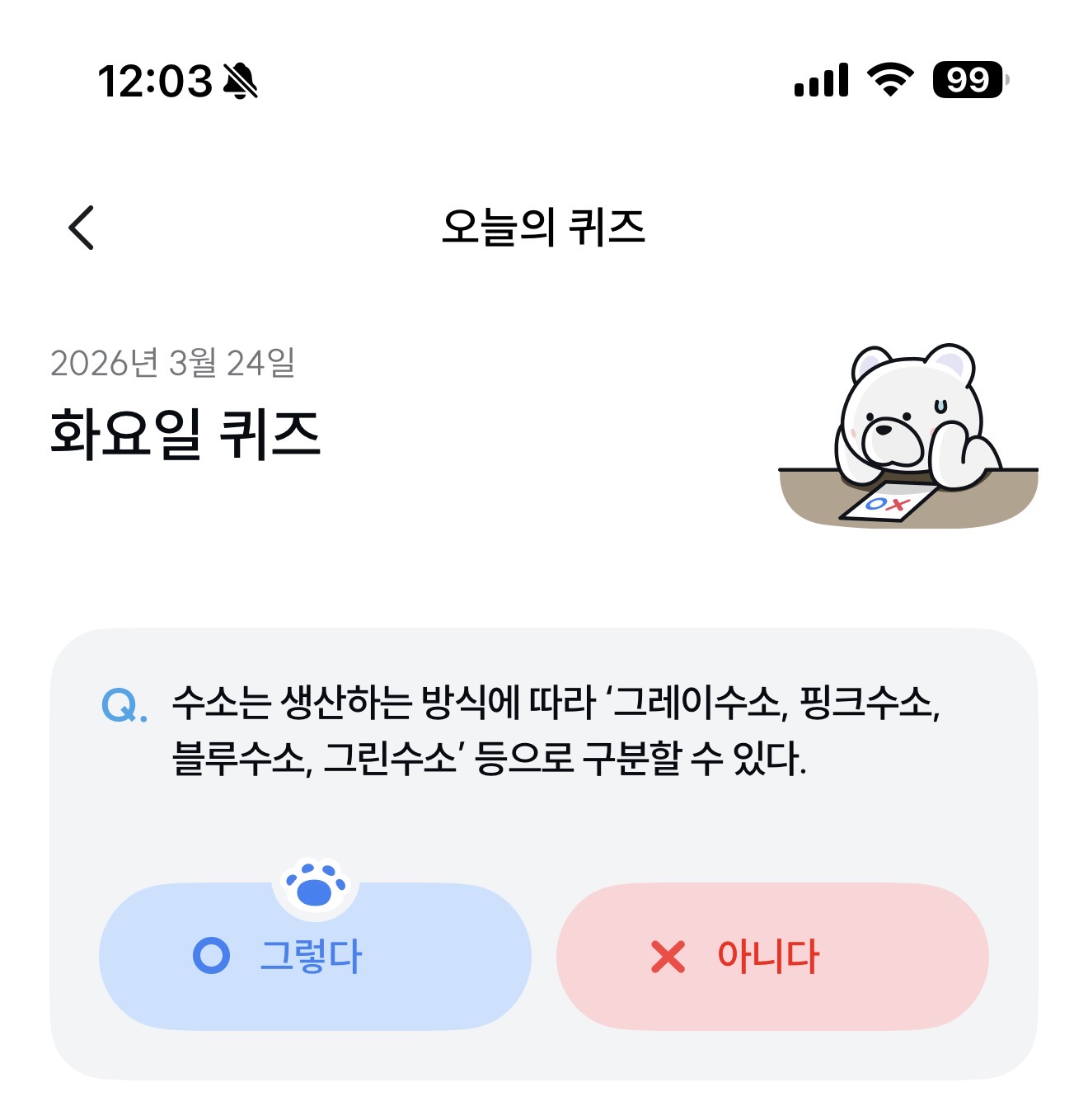 수소는 생산하는 방식에 다라 '그레이수소, 핑크수소, 블루수소, 그린수소' 등으로 구분할 수 있다. 그렇다 아니다 선택하면 되는데요. 수소도 미래 에너지 중 중요한 영역을 차지하는데요. 잘 참고해 보세요