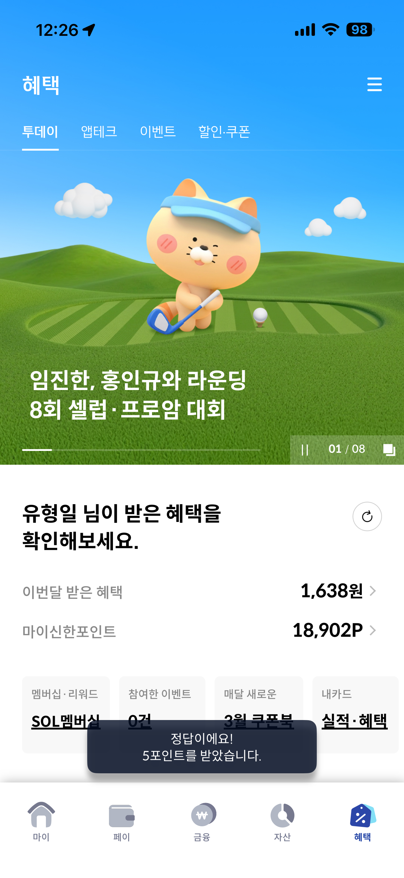 신한카드 퀴즈팡팡 3월 24일 문제입니다