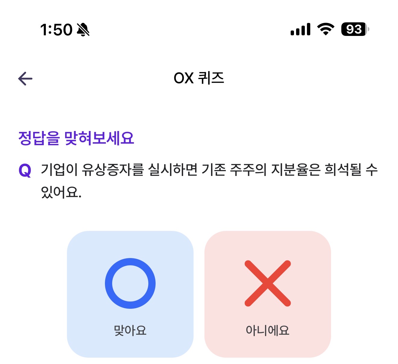 비트버니 OX 퀴즈 3월 24일 정답(기업이 유상증자를 실시하면 기존 주주의 지분율은 희석될 수 있어요)
