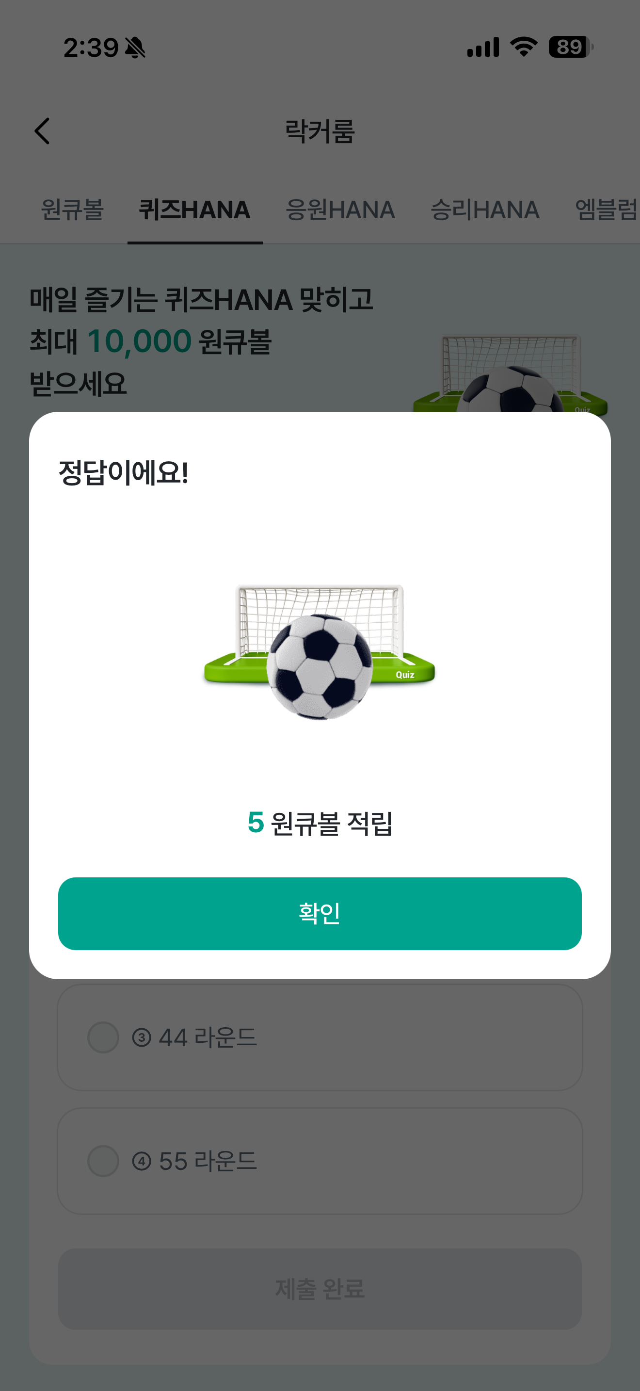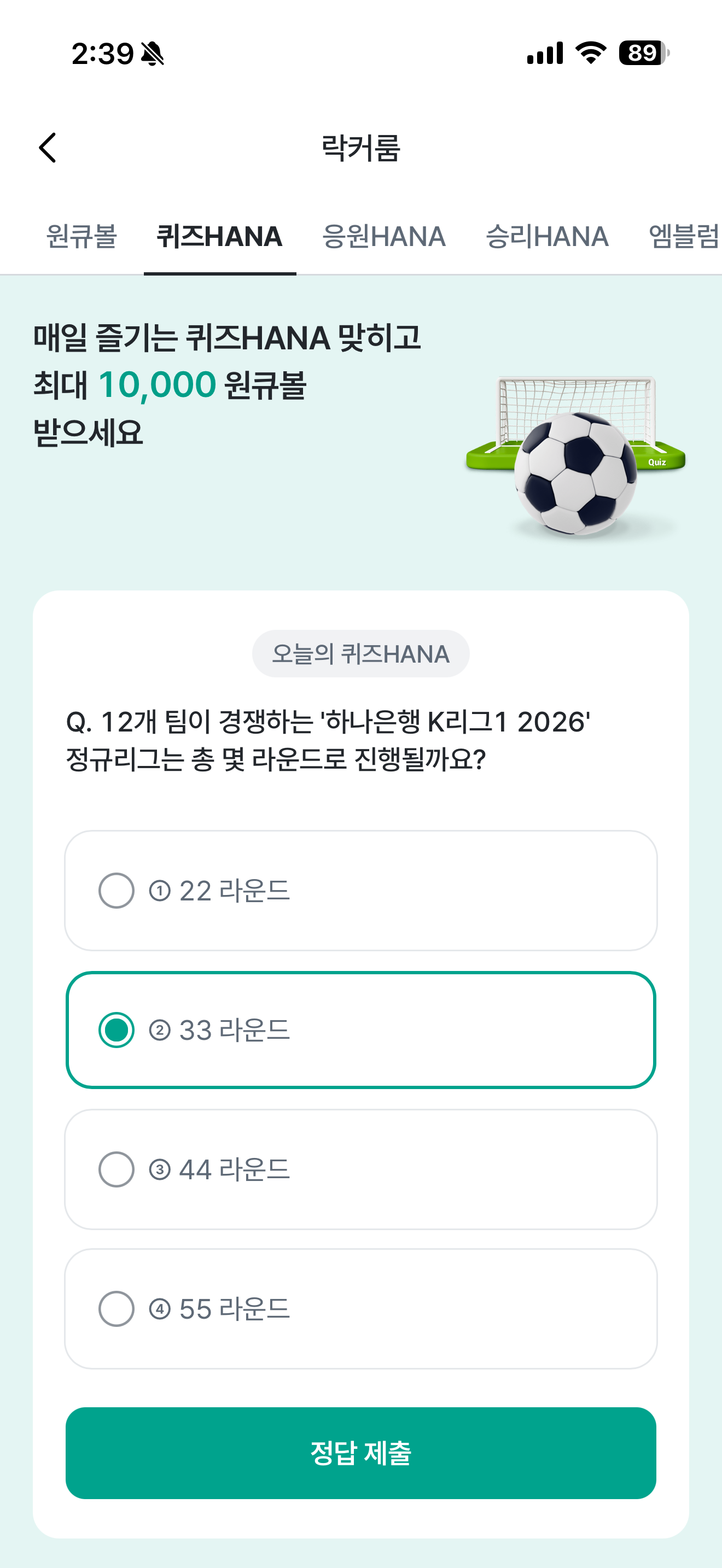 하나원큐 축구 play 퀴즈 HANA 정답은 33라운드 입니다
