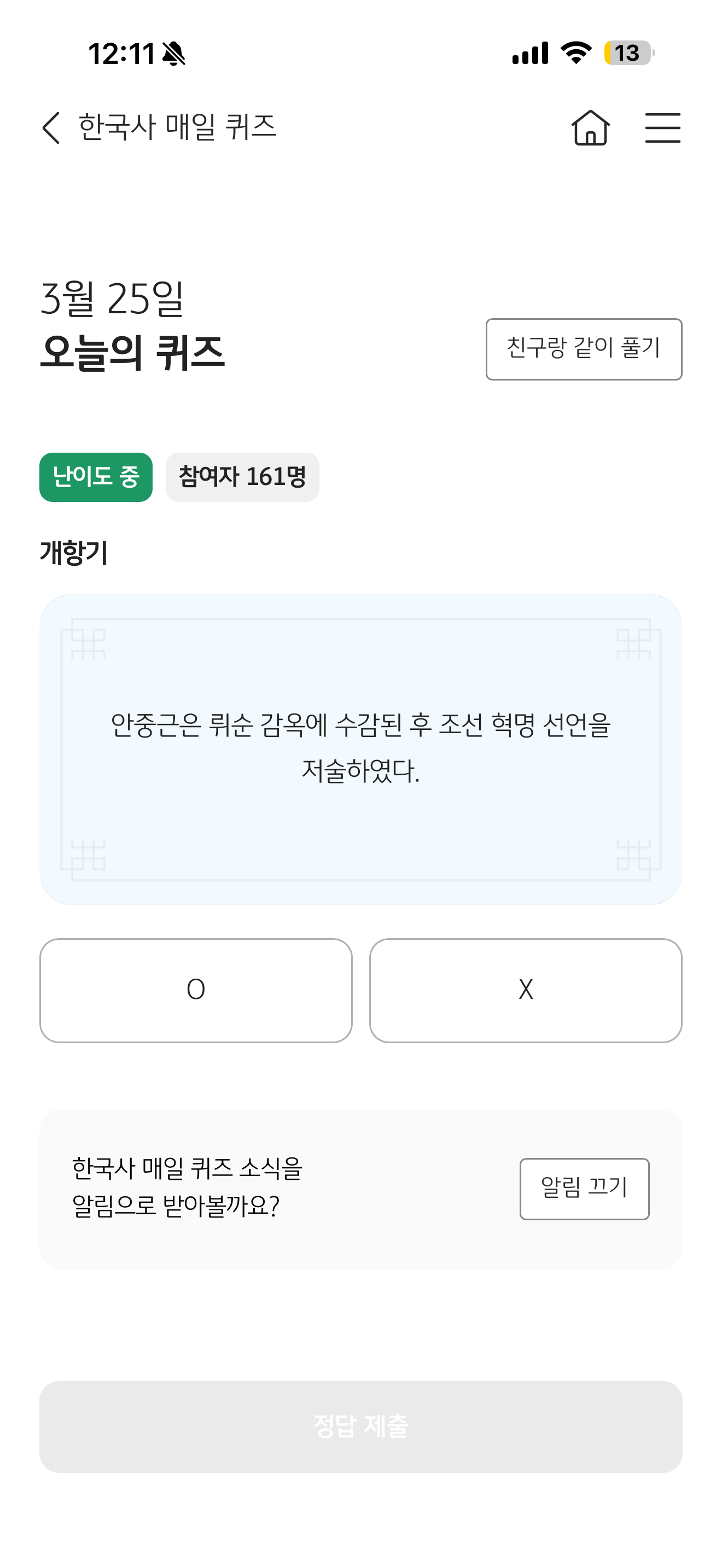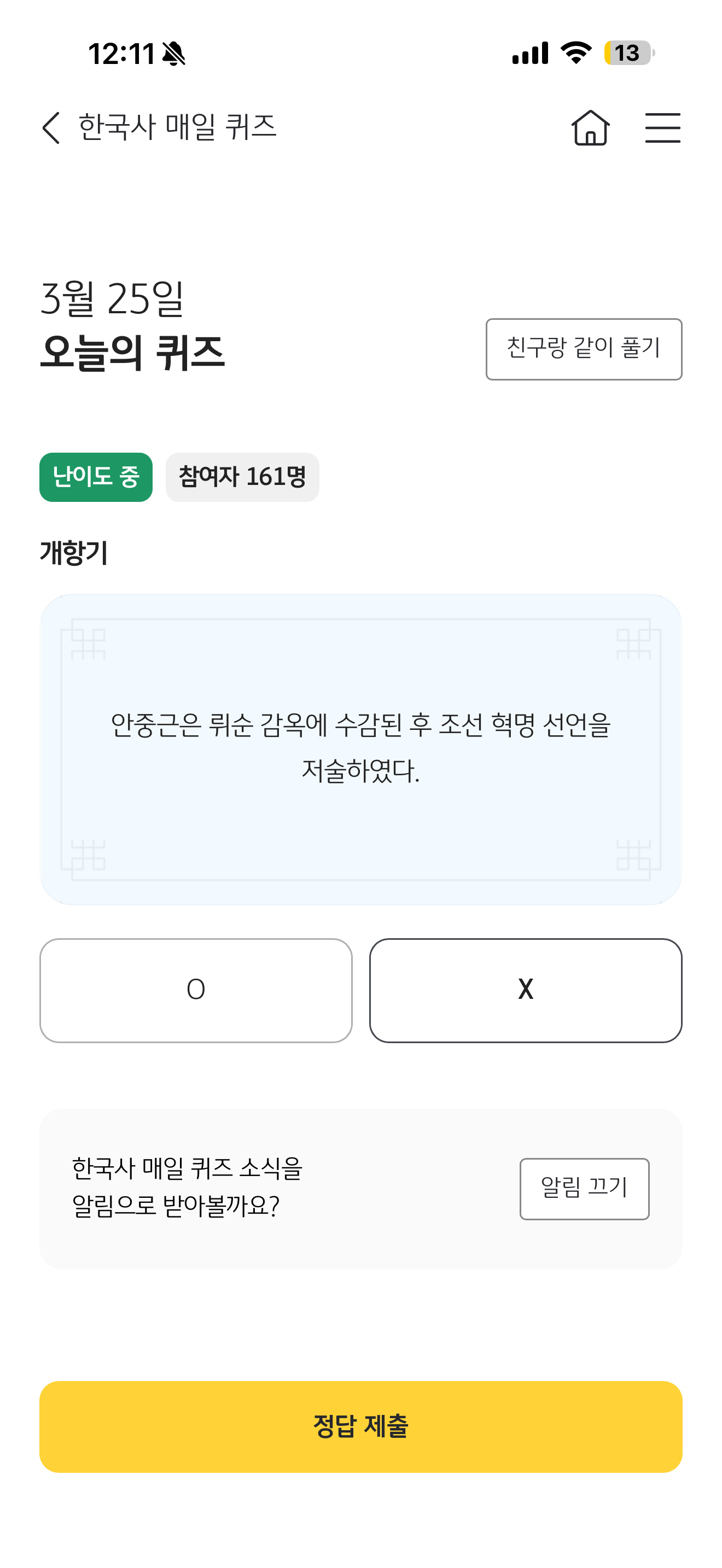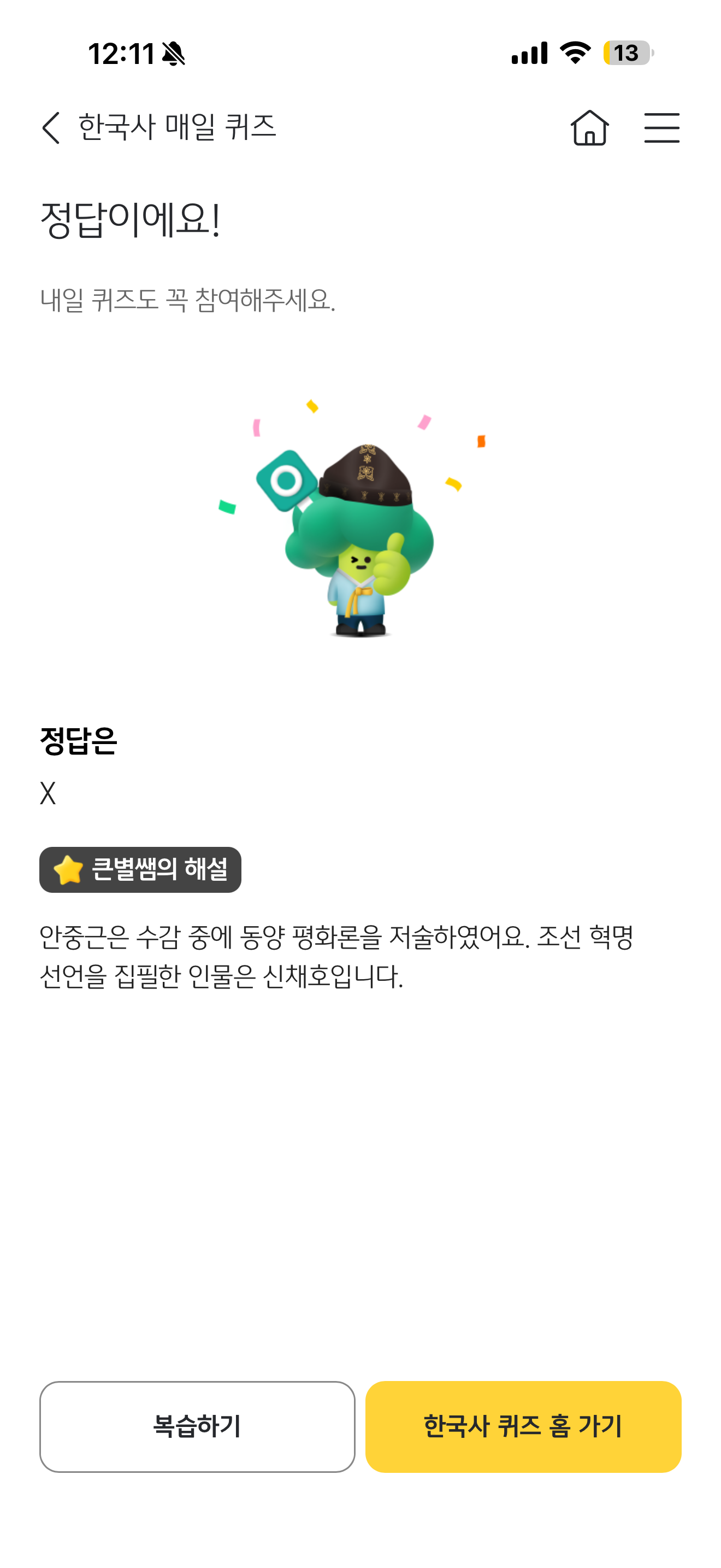 KB스타뱅킹 한국사 매일 퀴즈 정답은 X 입니다