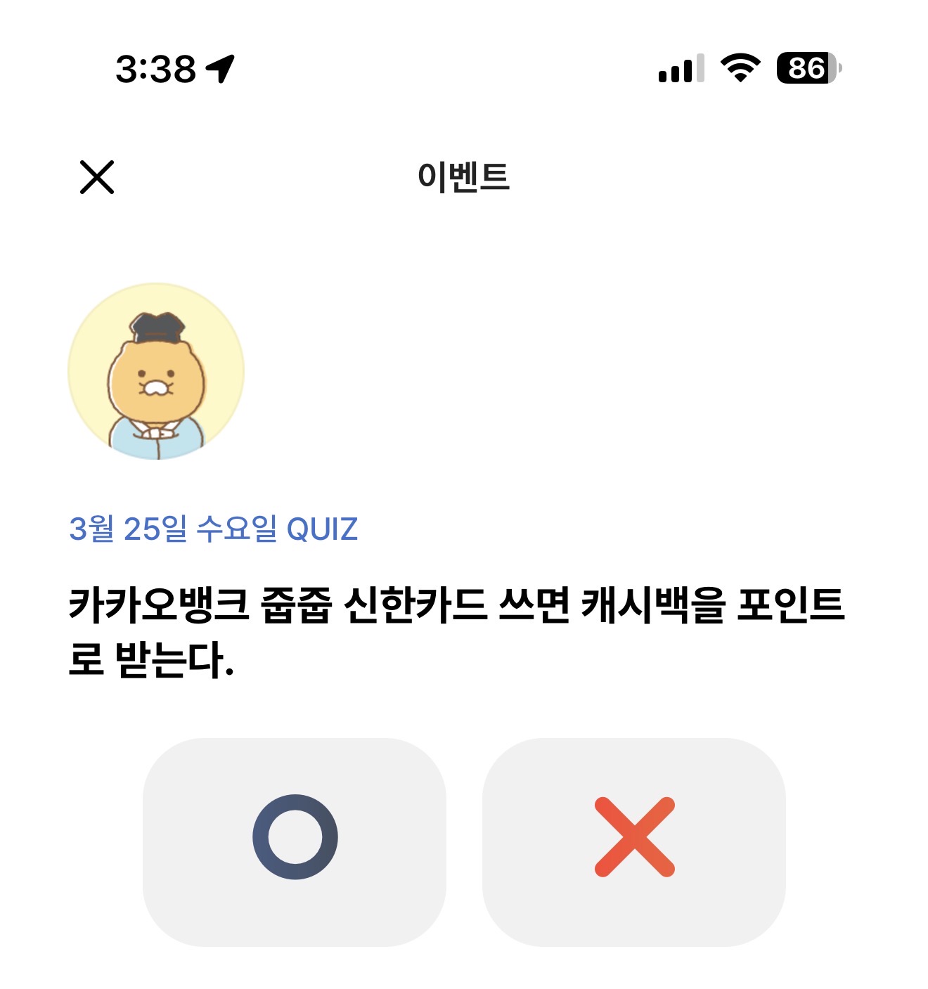 카카오뱅크 OX 퀴즈 정답은 X 입니다