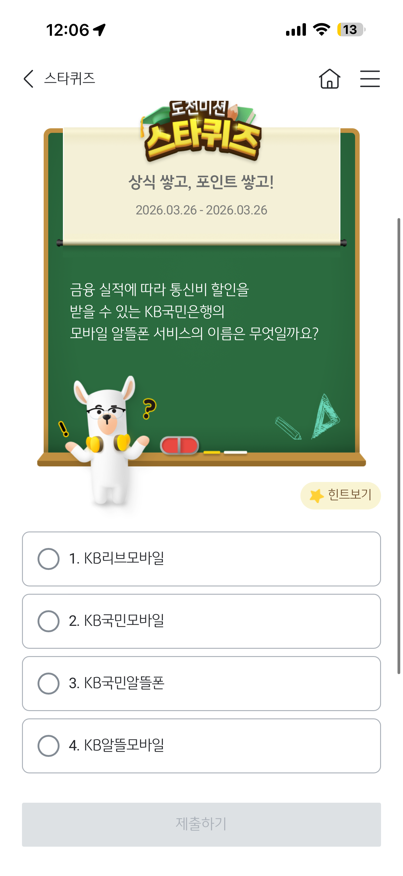 KB스타뱅킹 스타퀴즈 3월 26일 문제입니다