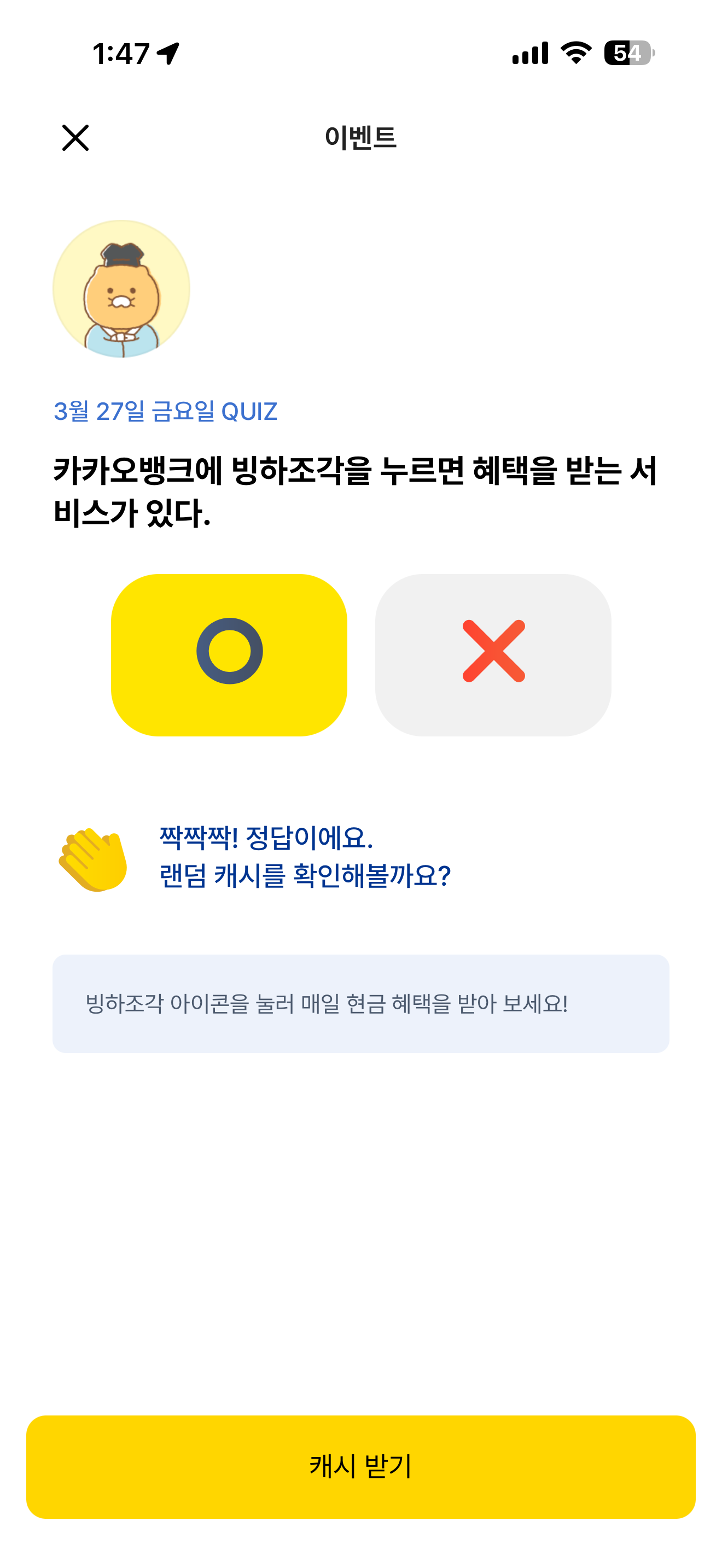 카카오뱅크 OX 퀴즈 정답은 O 입니다