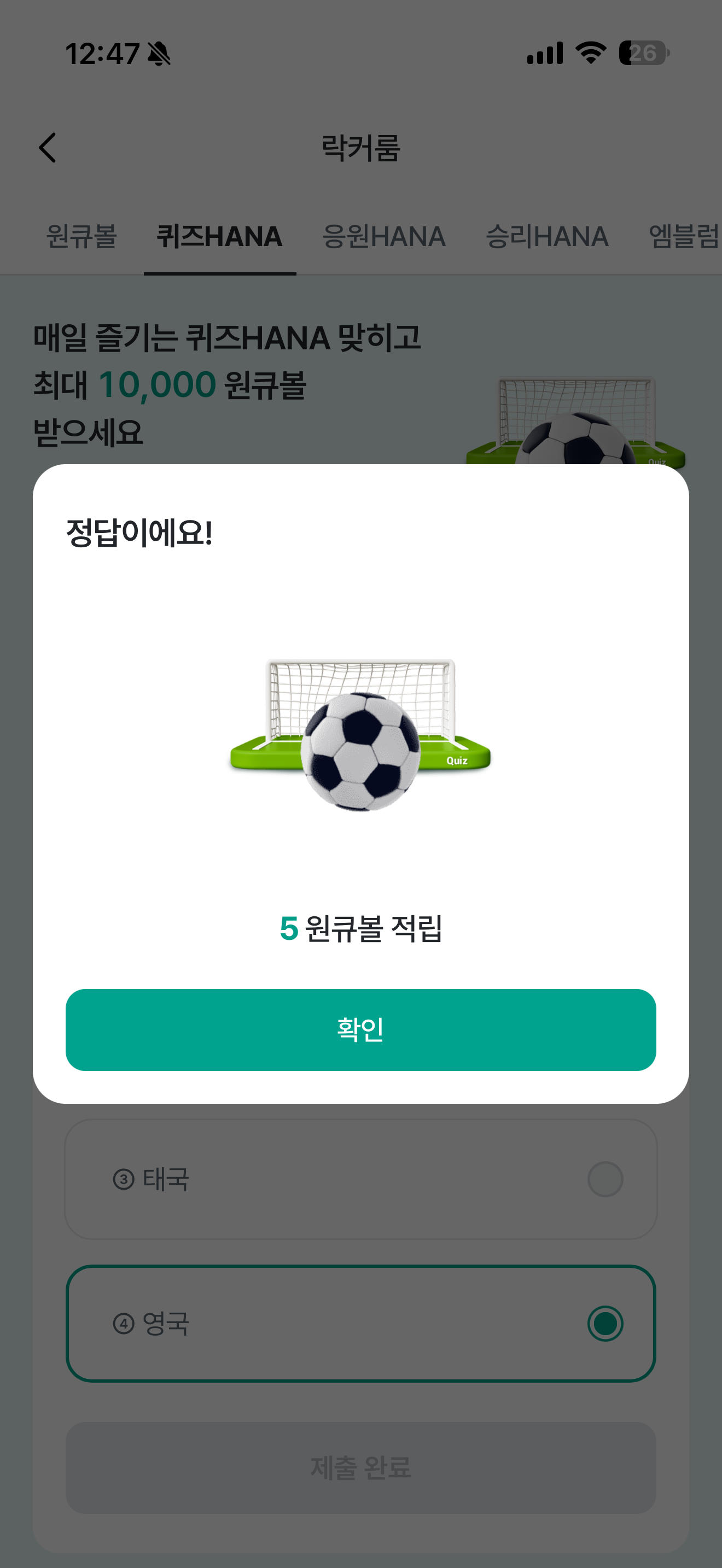 하나원큐 축구 play 퀴즈 HANA 정답은 영국 입니다