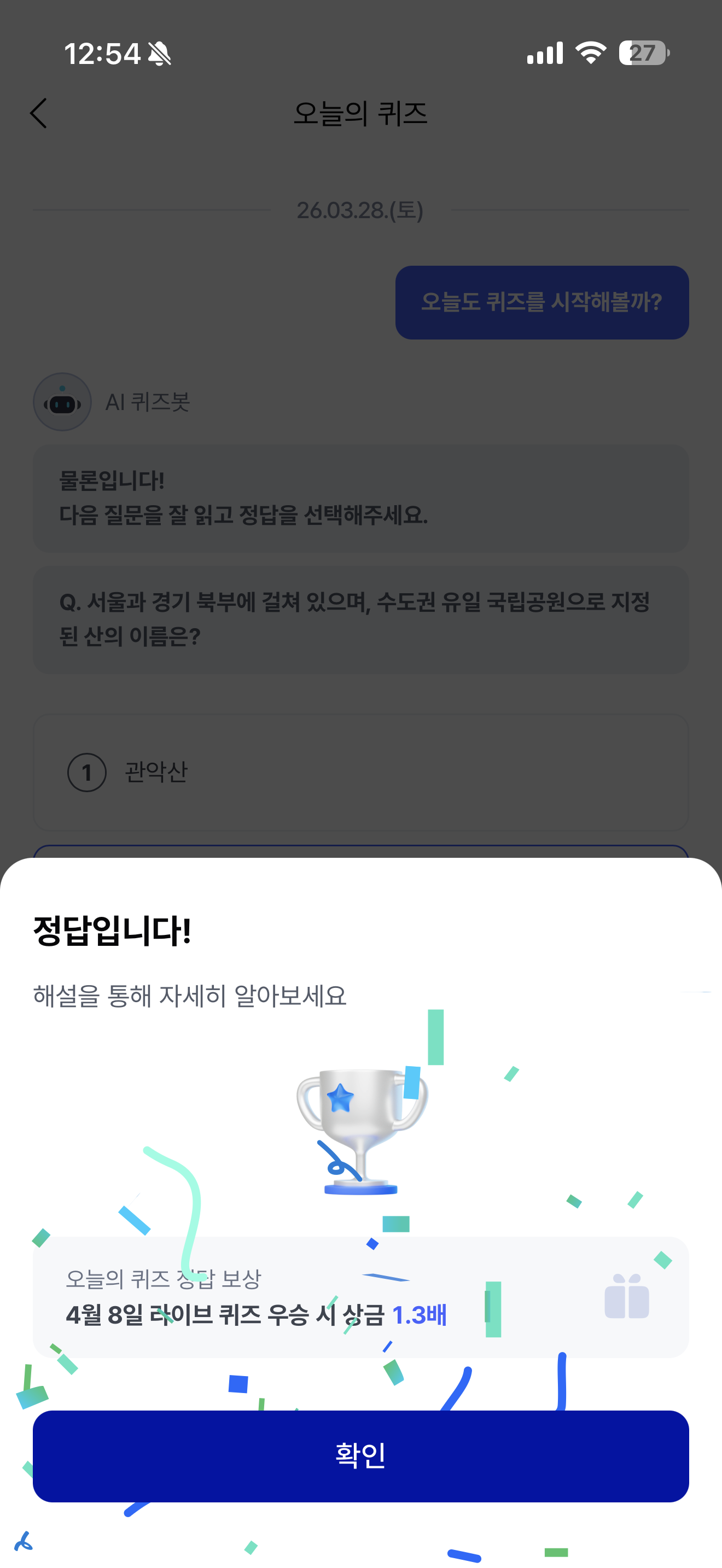 케이뱅크 AI 퀴즈 챌린지 정답은 북한산 입니다
