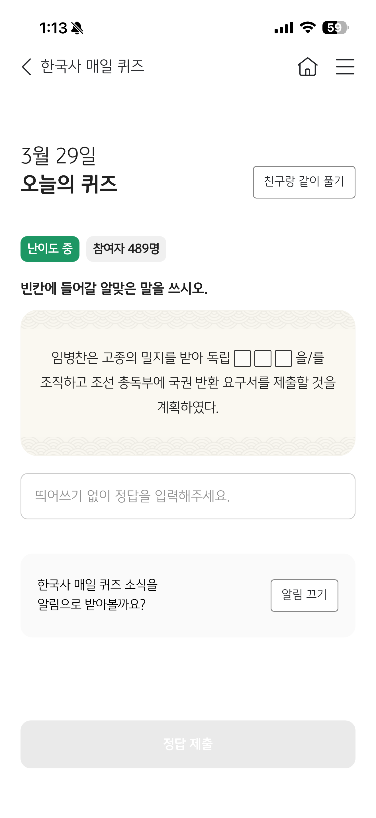 KB스타뱅킹 한국사 매일 퀴즈 3월 29일 문제입니다