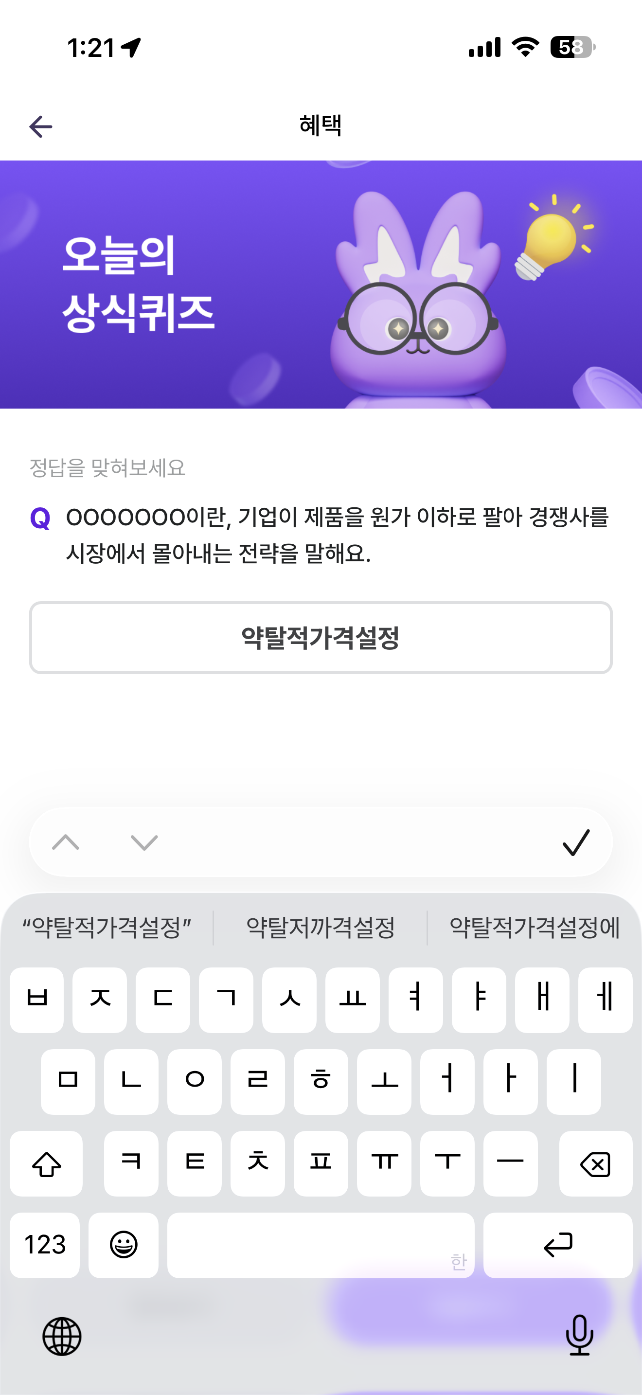 비트버니 오늘의 퀴즈 정답은 약탈적가격설정 입니다