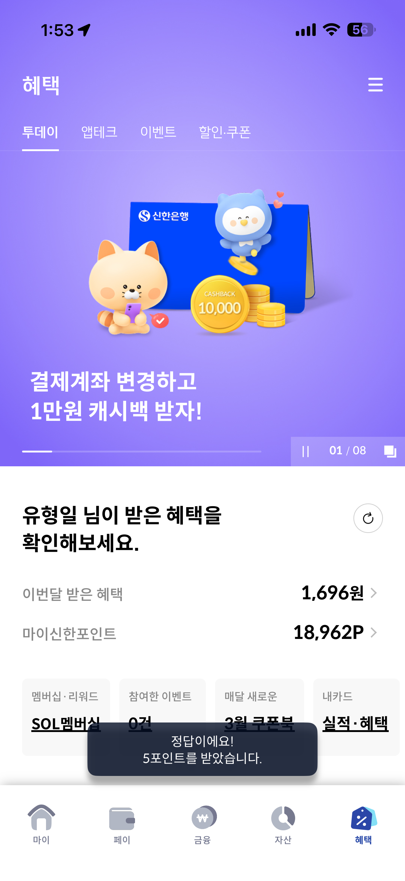 신한카드 퀴즈팡팡 3월 29일 문제입니다