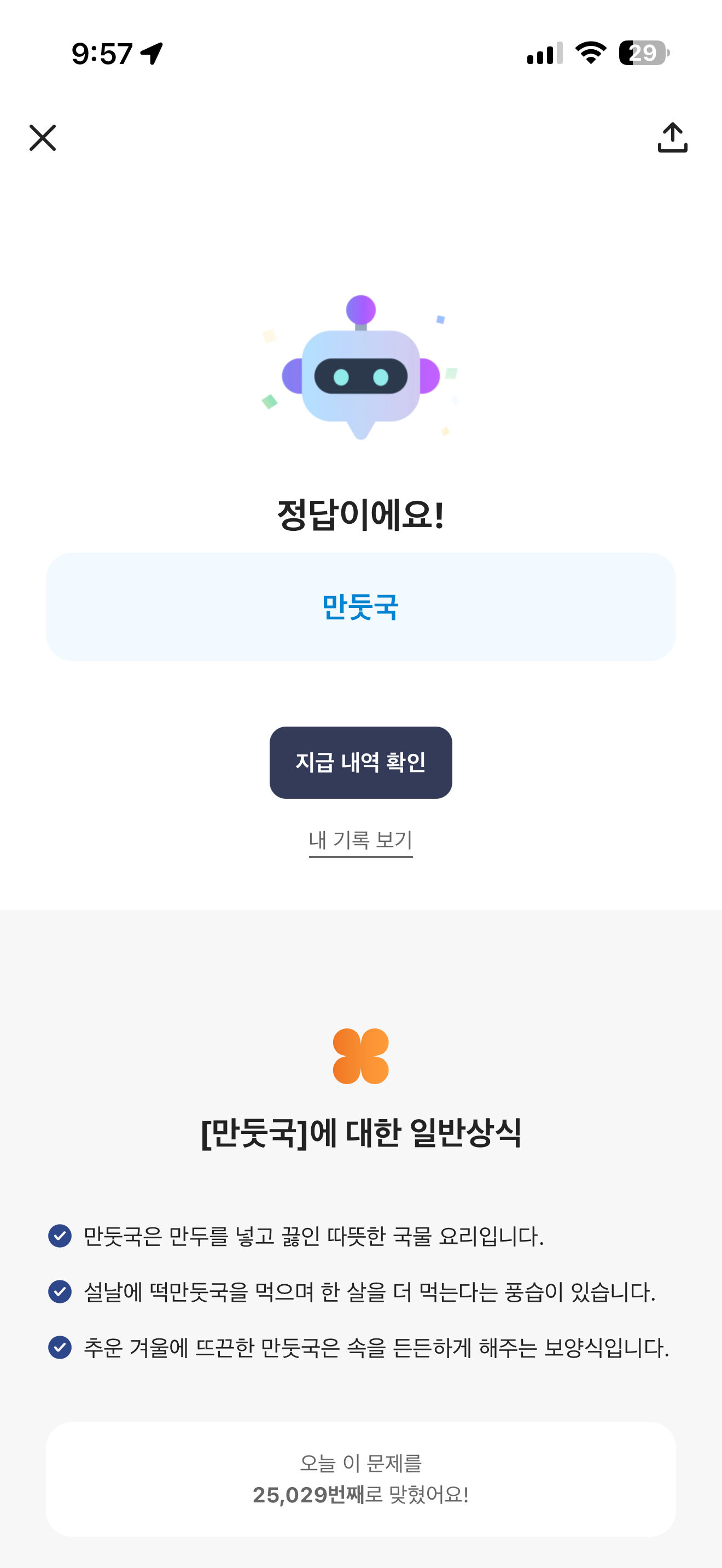 카카오뱅크 AI 이모지 퀴즈 정답은 만둣국 입니다