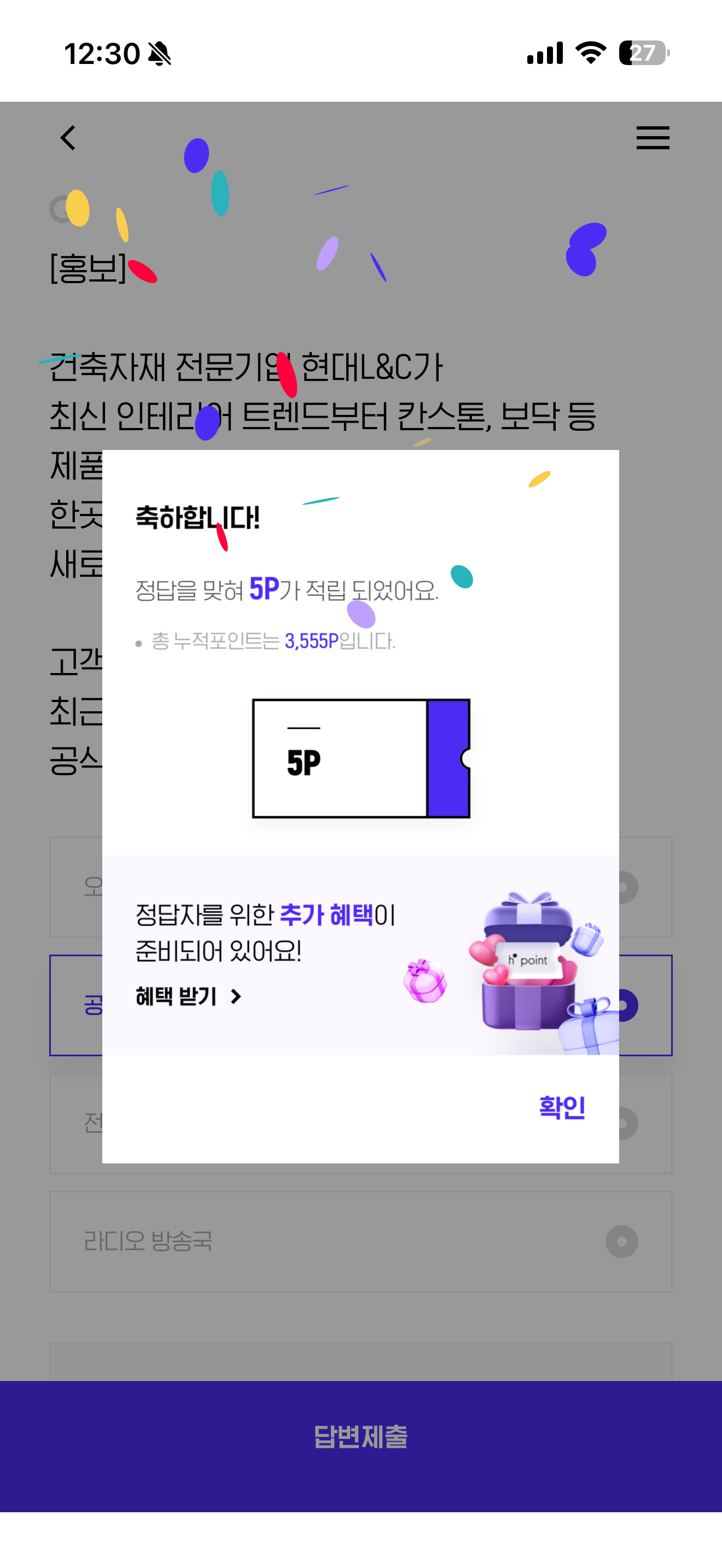 H포인트 퀴즈 3월 30일 문제입니다