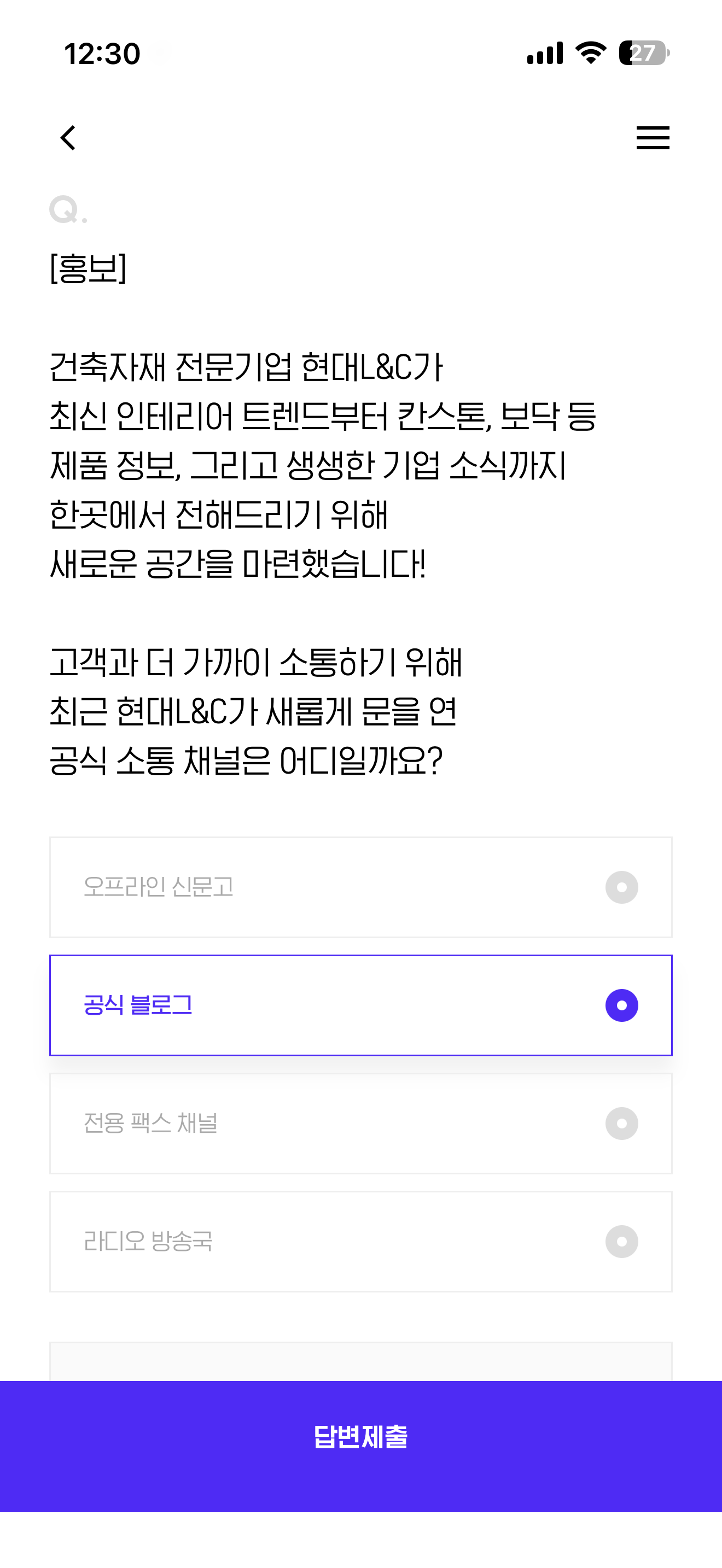 H포인트 퀴즈 정답은 공식 블로그 입니다
