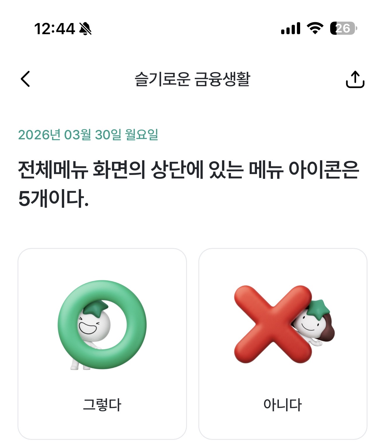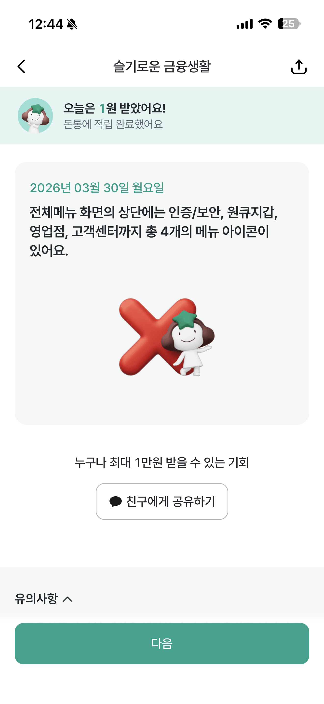 하나원큐 슬기로운 금융생활 OX퀴즈 정답은 X 입니다