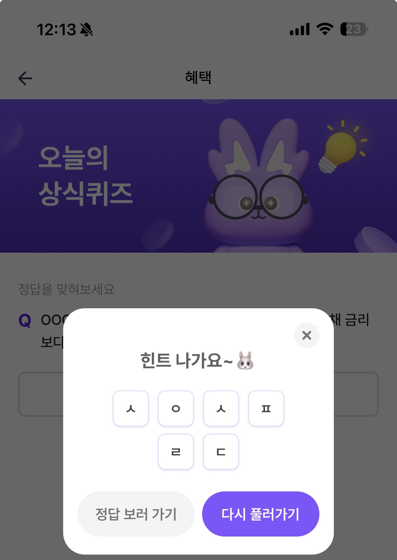 비트버니 오늘의 퀴즈 초성 힌트는 ㅅㅇㅅㅍㄹㄷ 입니다