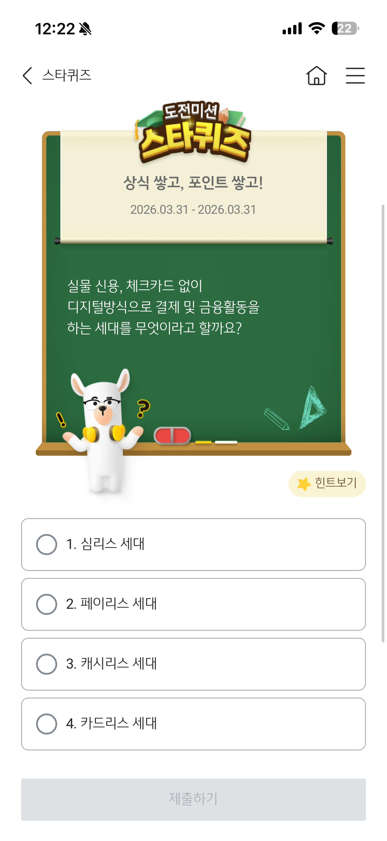 KB스타뱅킹 스타퀴즈 정답은 카드리스 세대 입니다