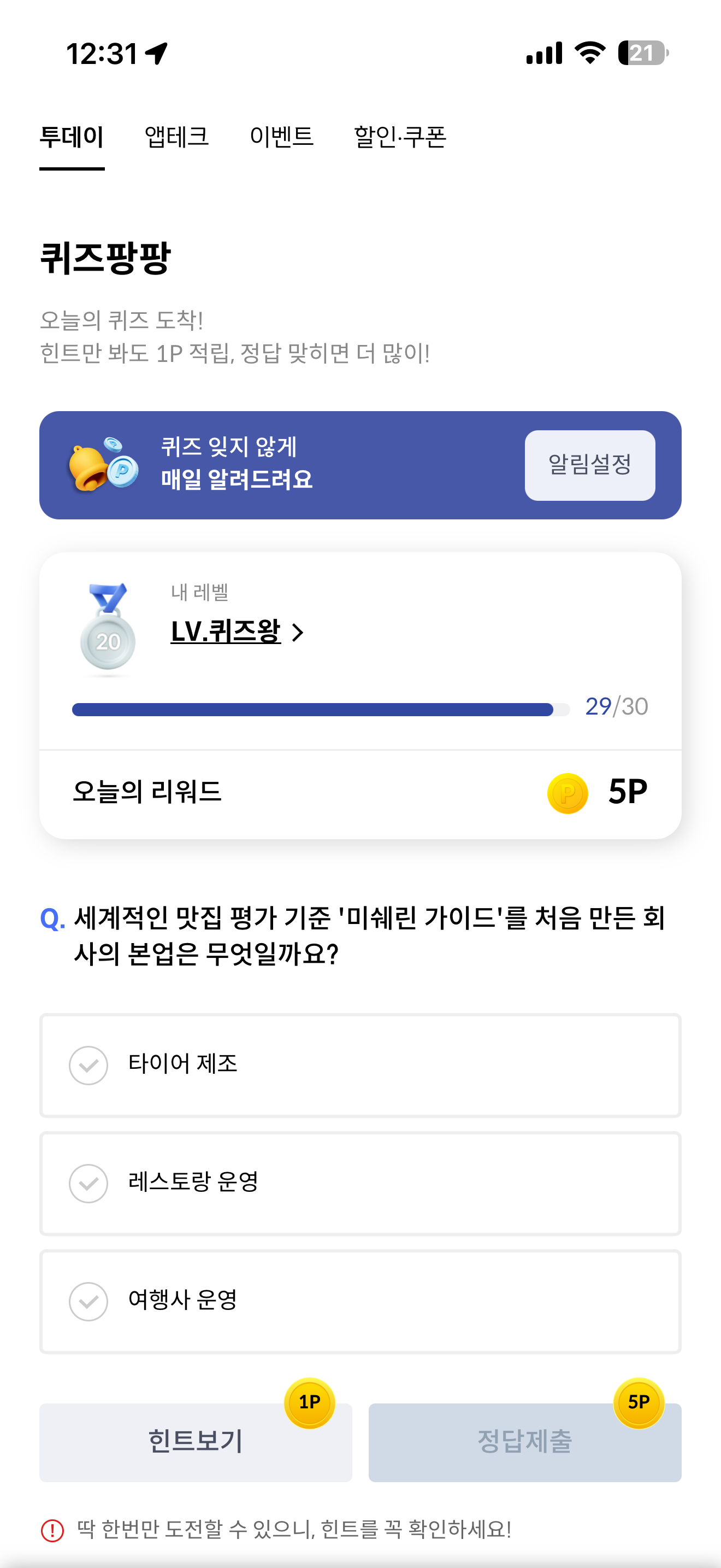신한카드 퀴즈팡팡 정답은 타이어 제조 입니다